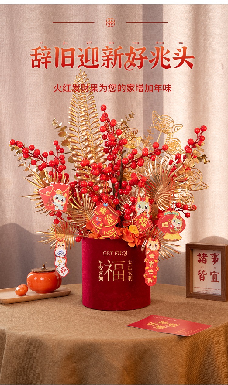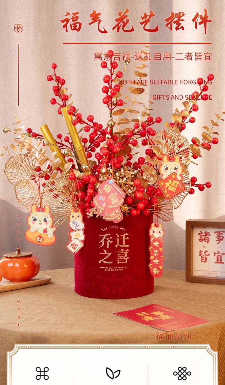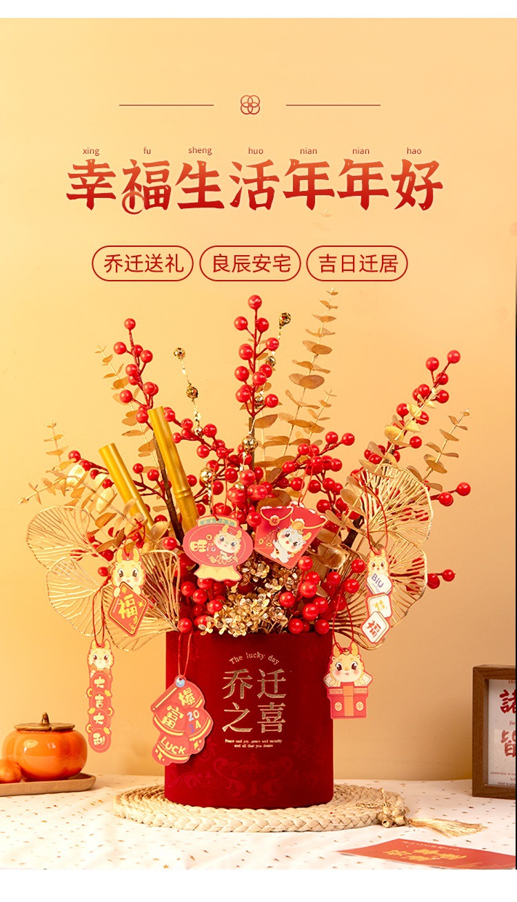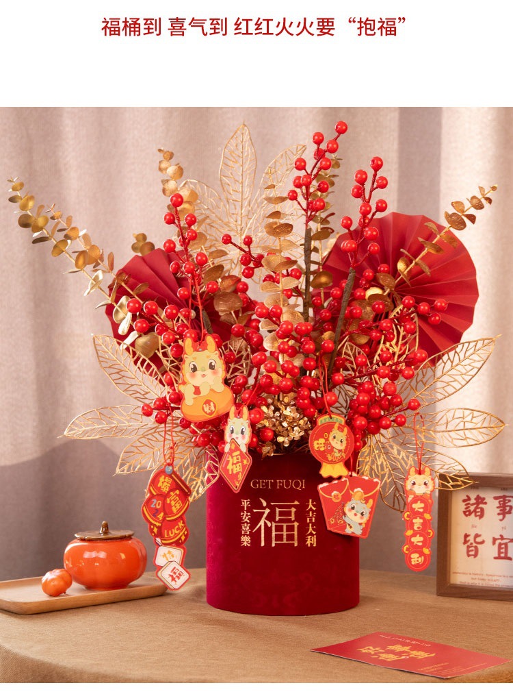 2025新年红果发财【果福桶摆件 年宵花仿真花束套装】喜庆乔迁 新房摆件
