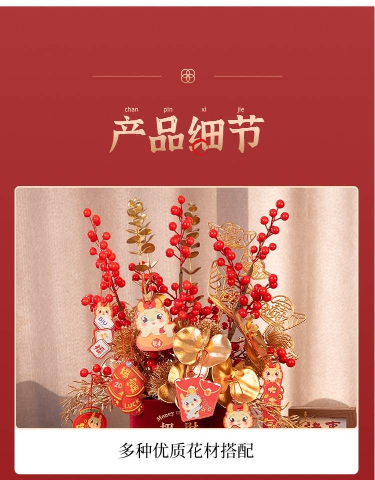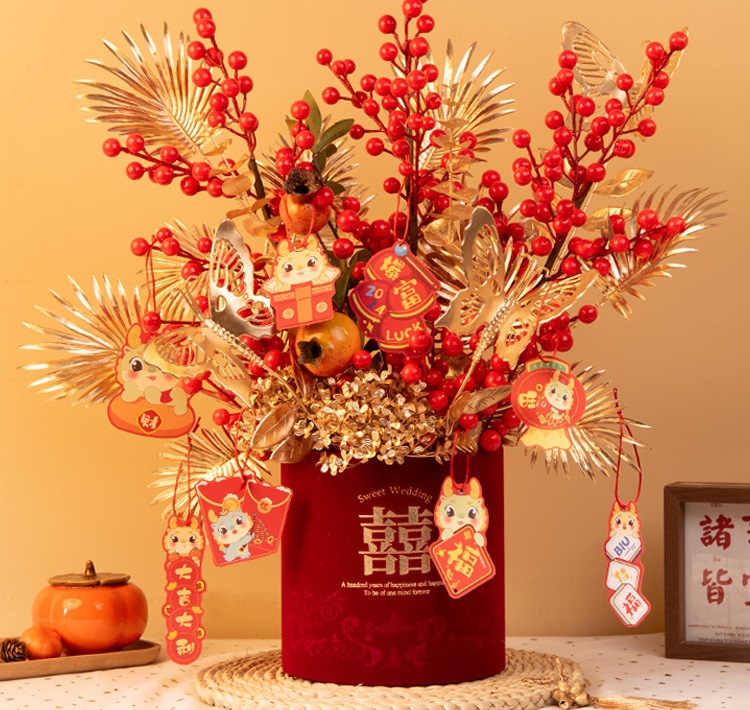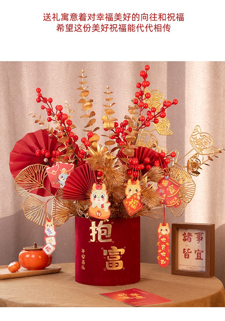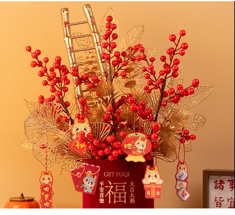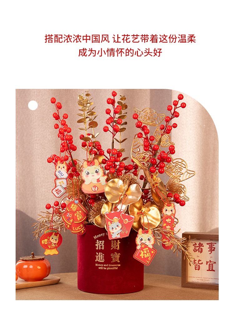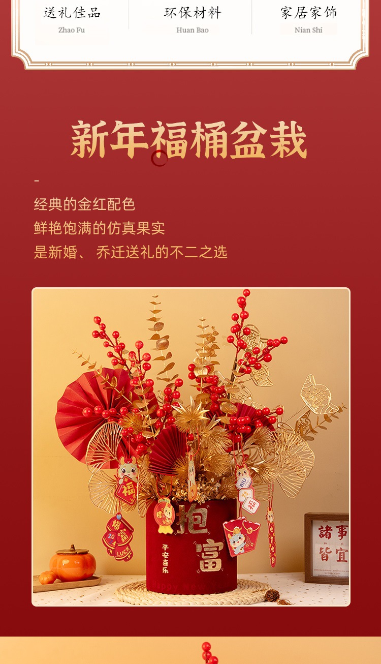 2025新年红果发财【果福桶摆件 年宵花仿真花束套装】喜庆乔迁 新房摆件