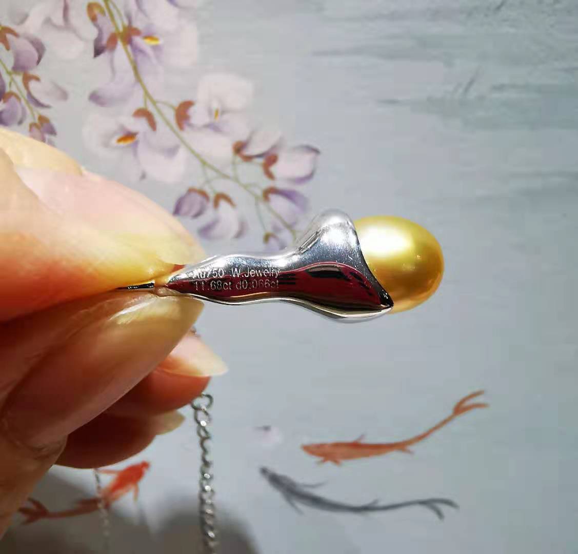 颜色最好的浓金色海水珍珠,直径8*10mm.