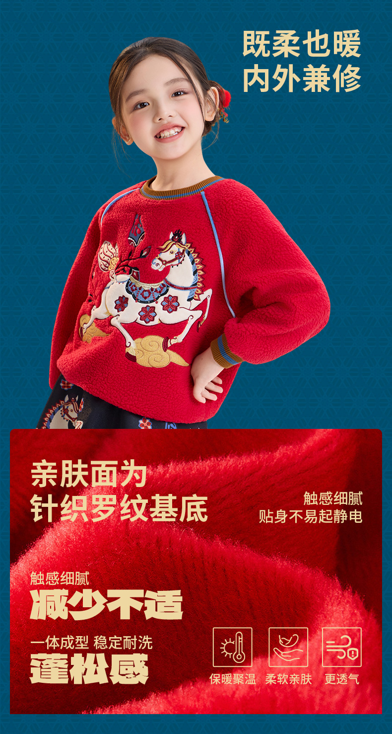 年衣童装儿童卫衣冬季新品长袖t恤男女童中式锦绣前程卫衣