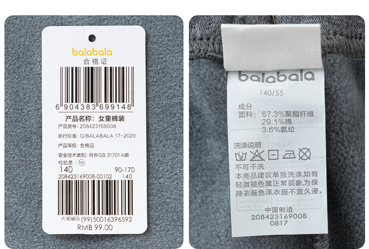 巴拉巴拉女童保暖裤冬季加绒儿童长裤子打底内穿外出宝宝大童亲肤