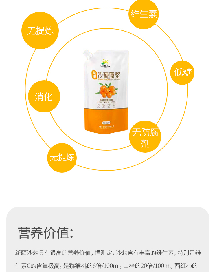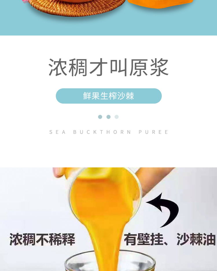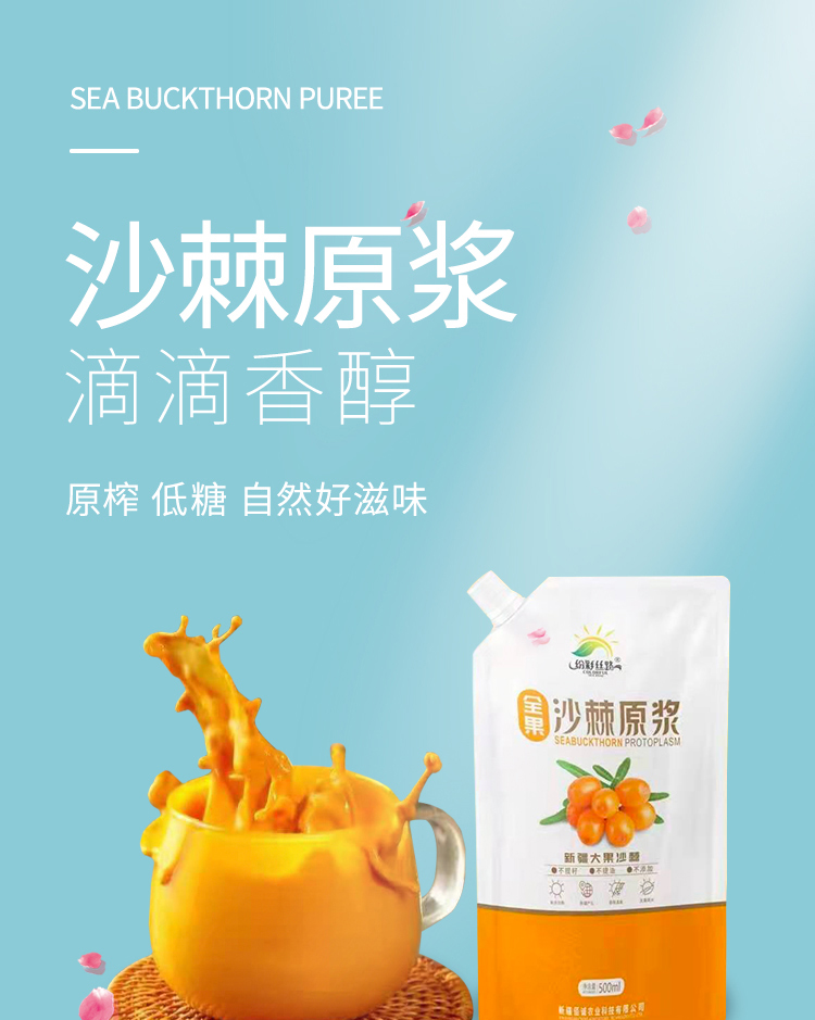 沙棘原浆(新疆野生新鲜沙棘果汁100%天然原含油