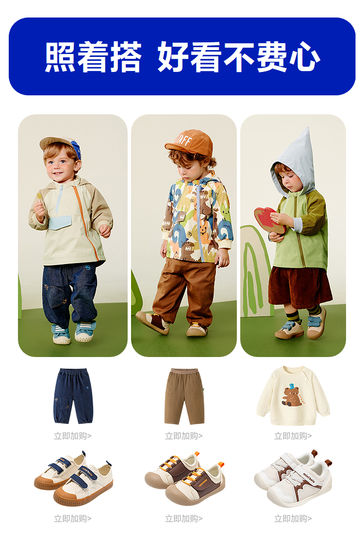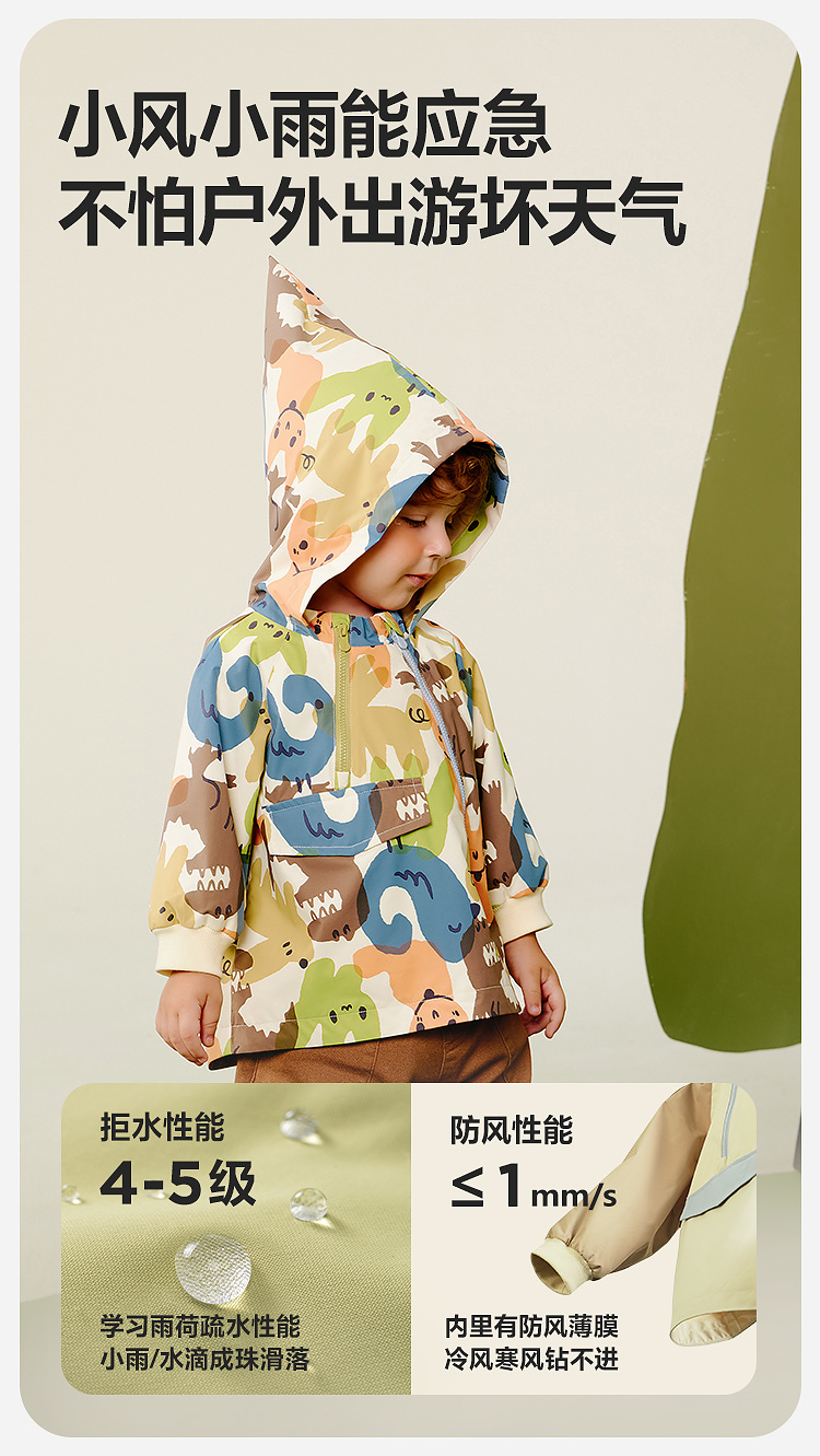 【小软皮】迷你巴拉男童连帽外套宝宝防风柔软插肩袖户外上衣