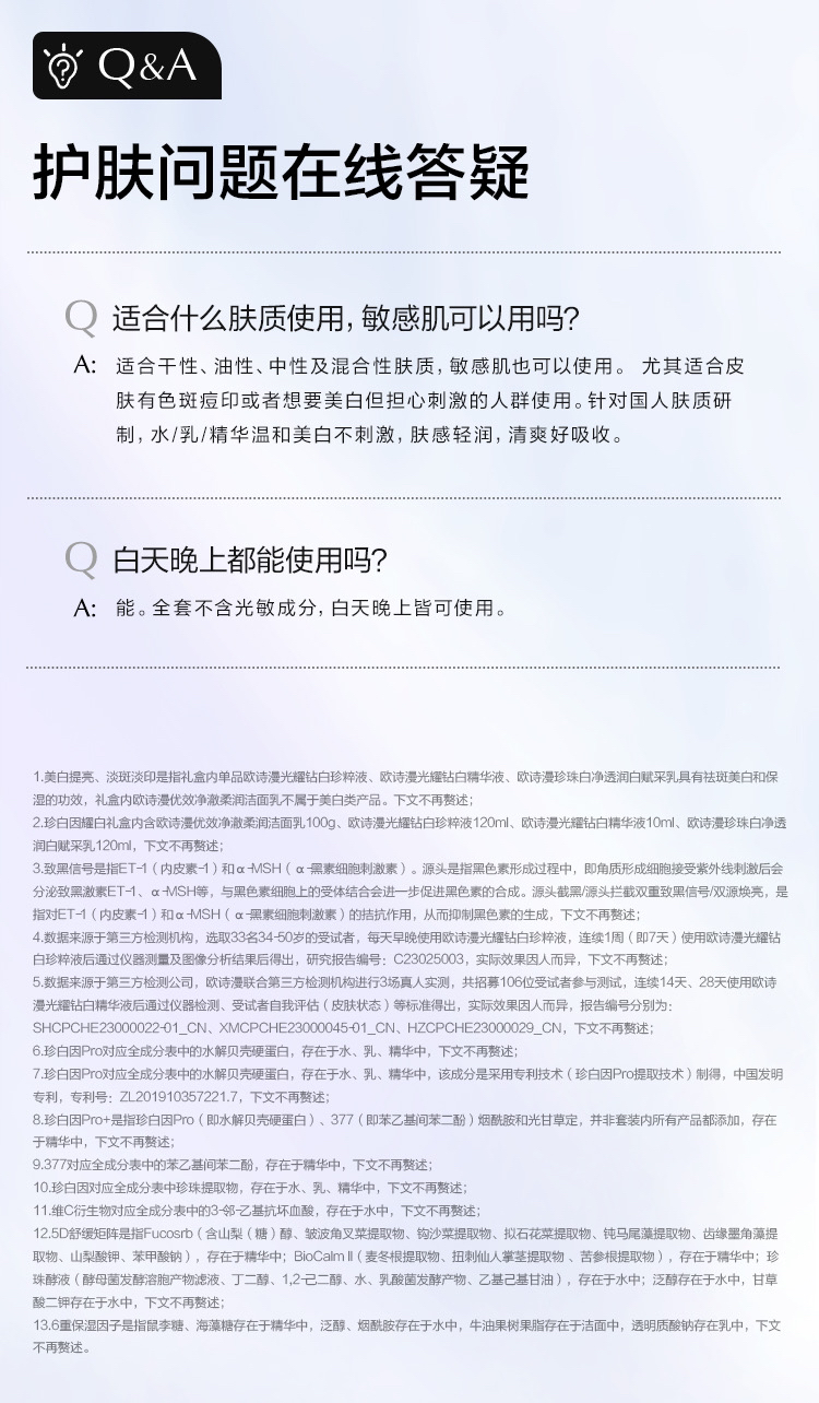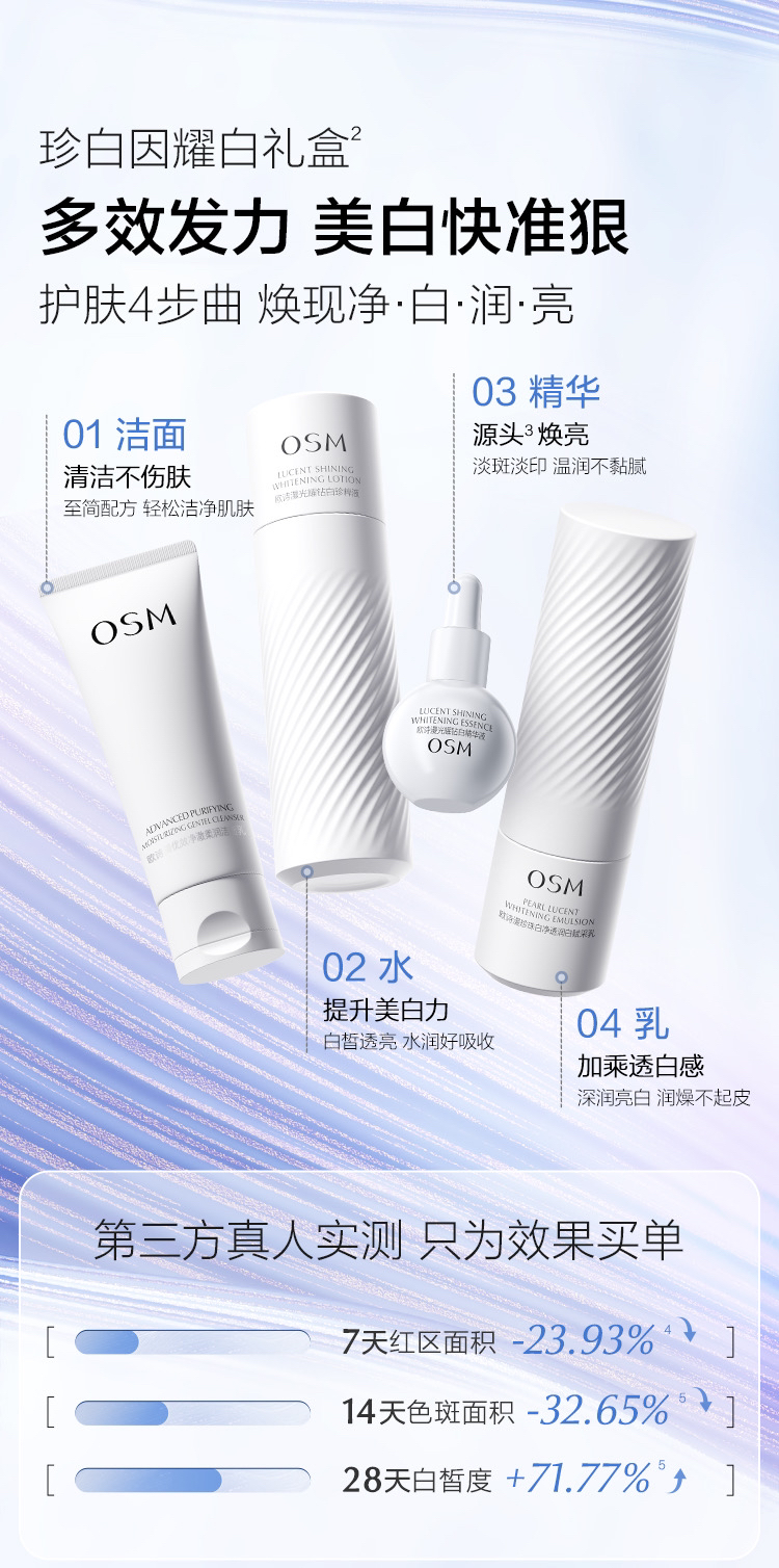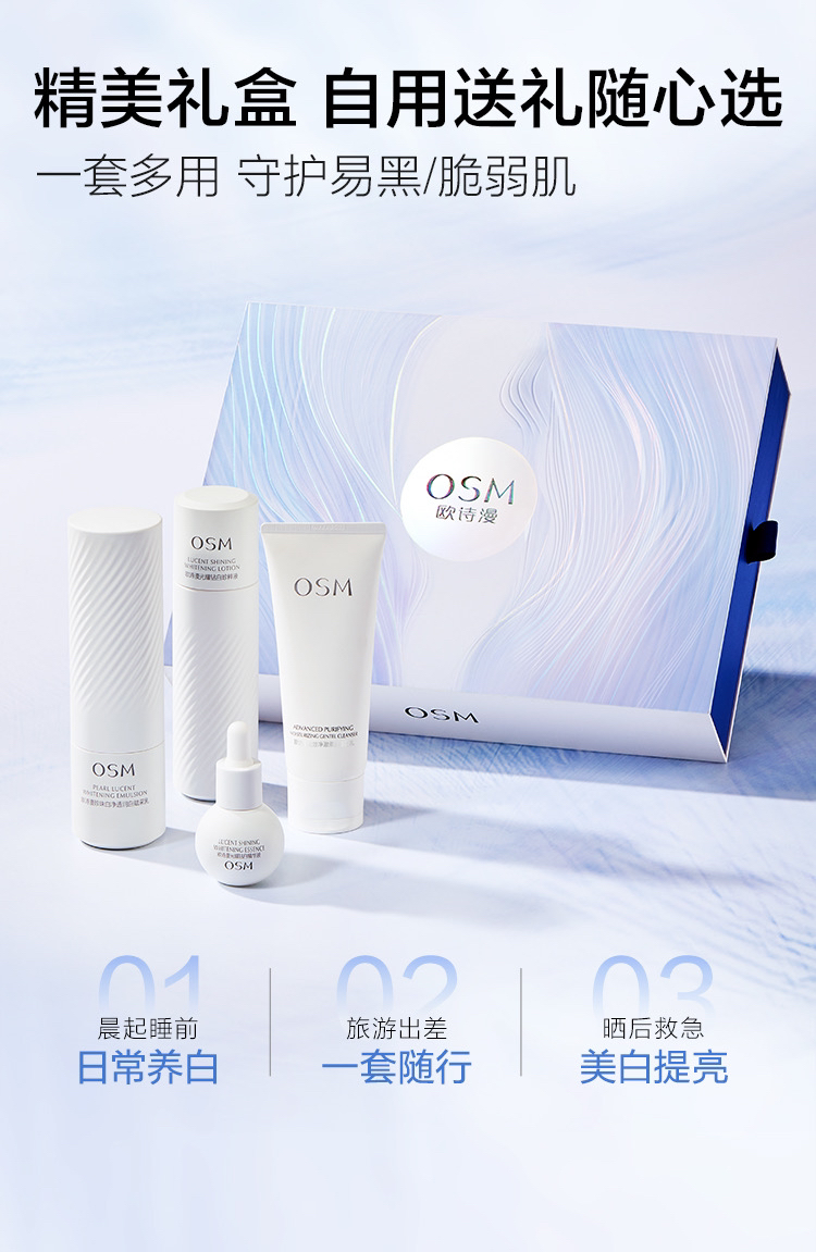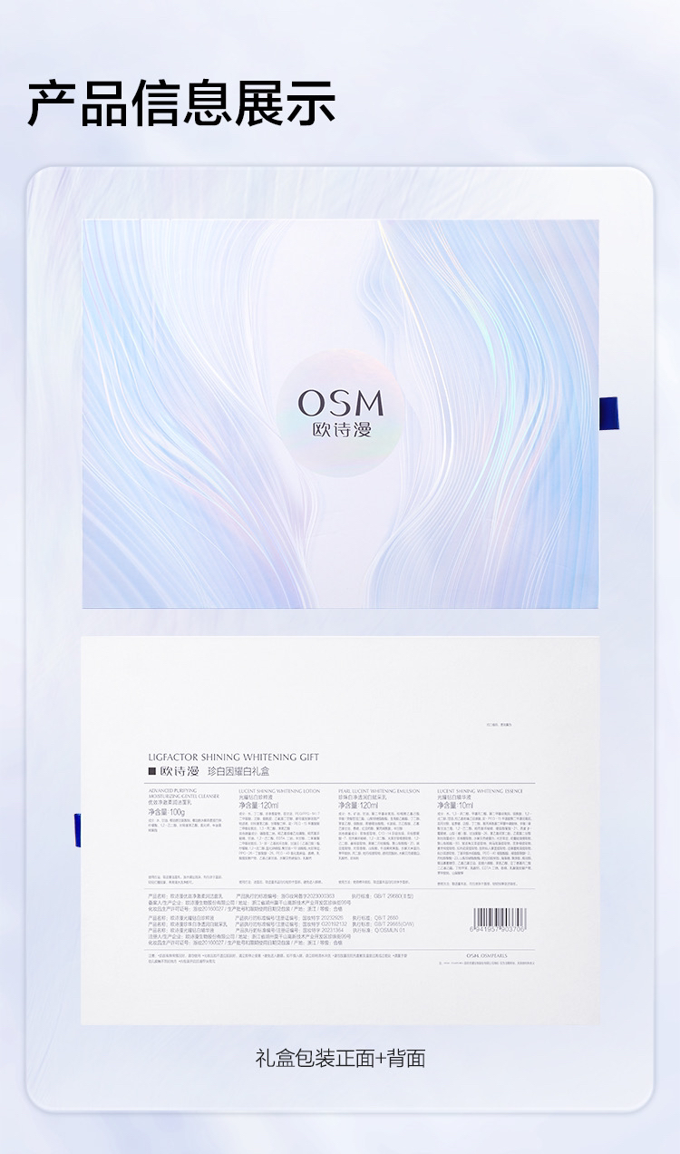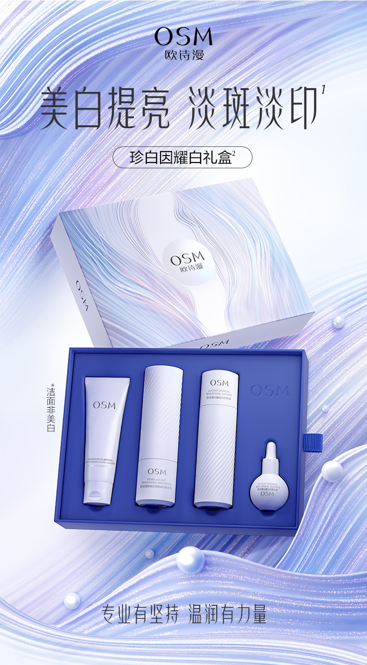 欧诗漫珍白耀白4件套礼盒(洁面乳100g+珍萃液120ml+乳液120ml+精华液10ml)