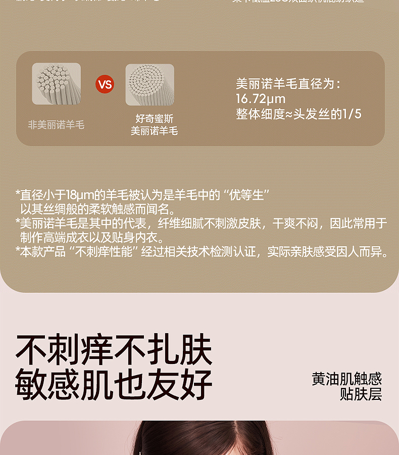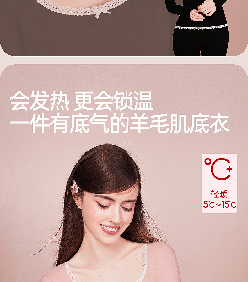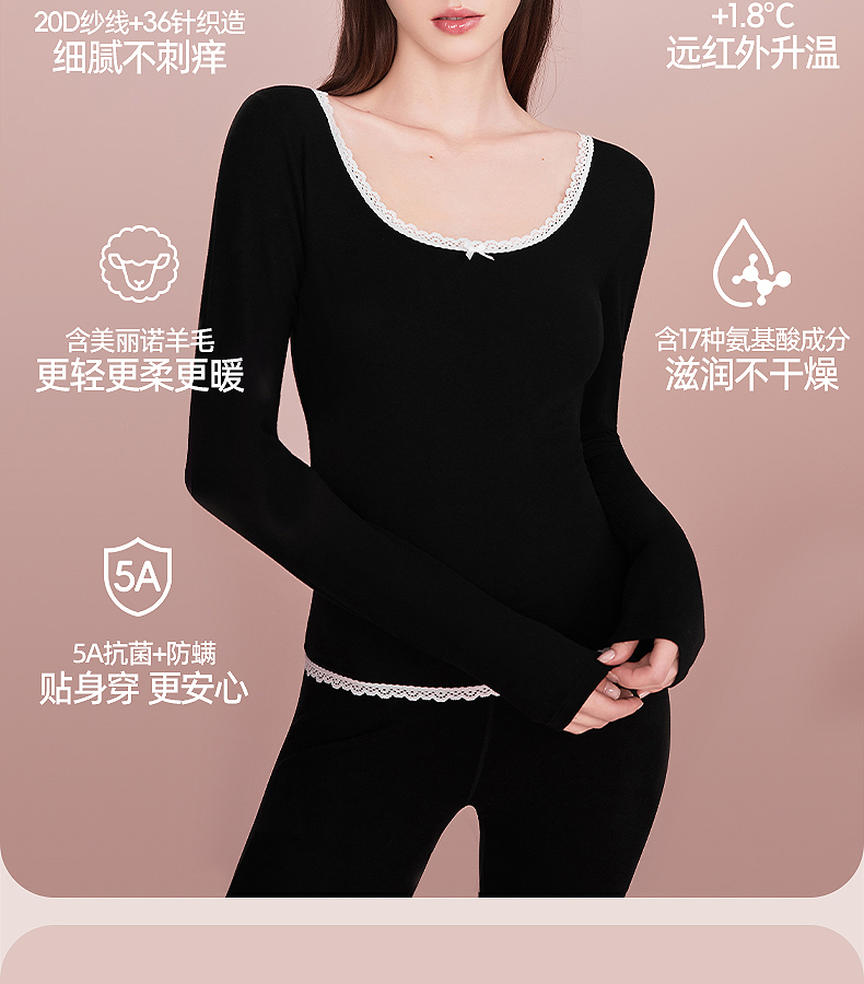 好奇蜜斯羊毛保暖内衣女发热抗静电肌底衣秋冬内搭打底衫加绒秋衣-罗温功能版