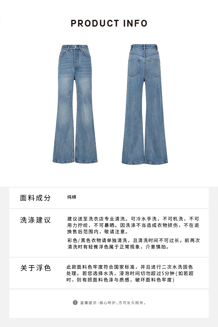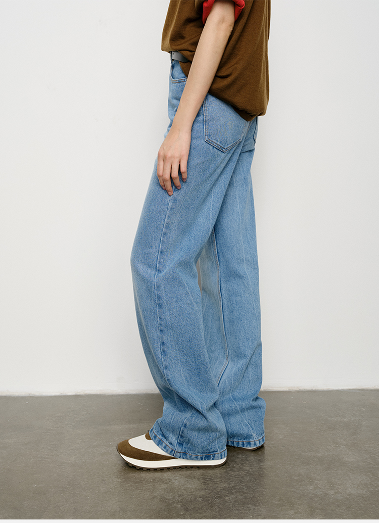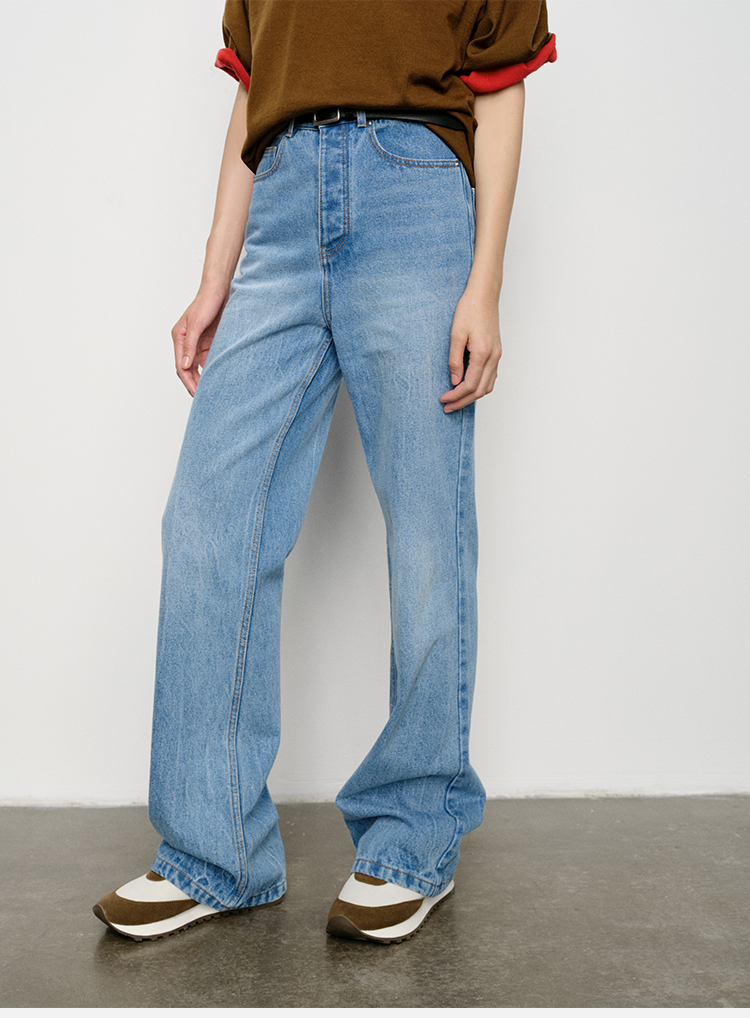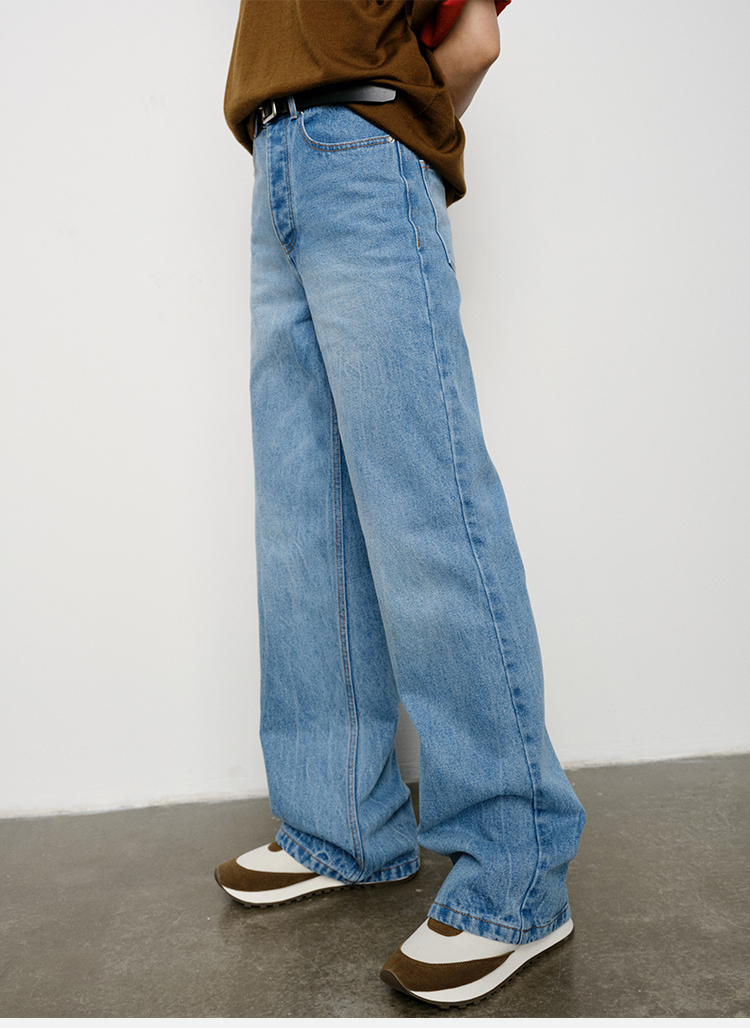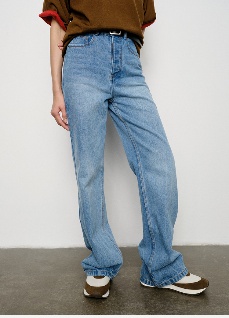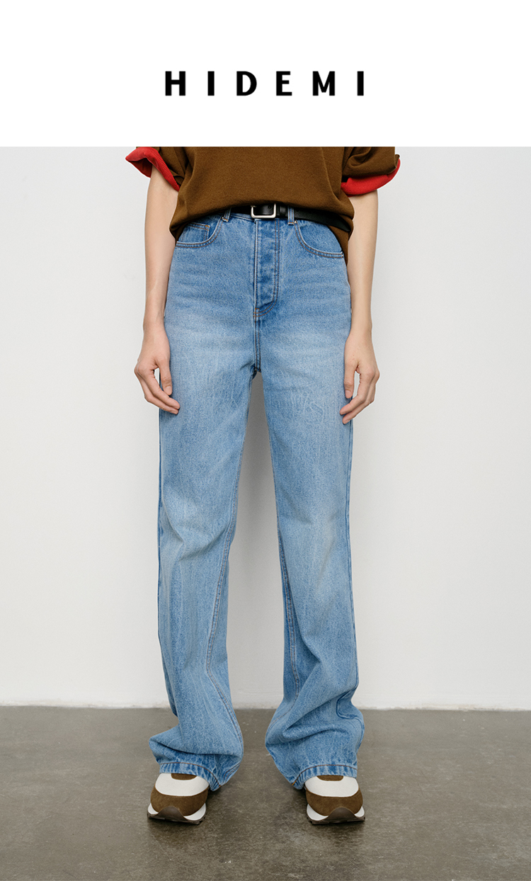 HIDEMI 水洗做旧感高品相单宁牛仔直筒裤