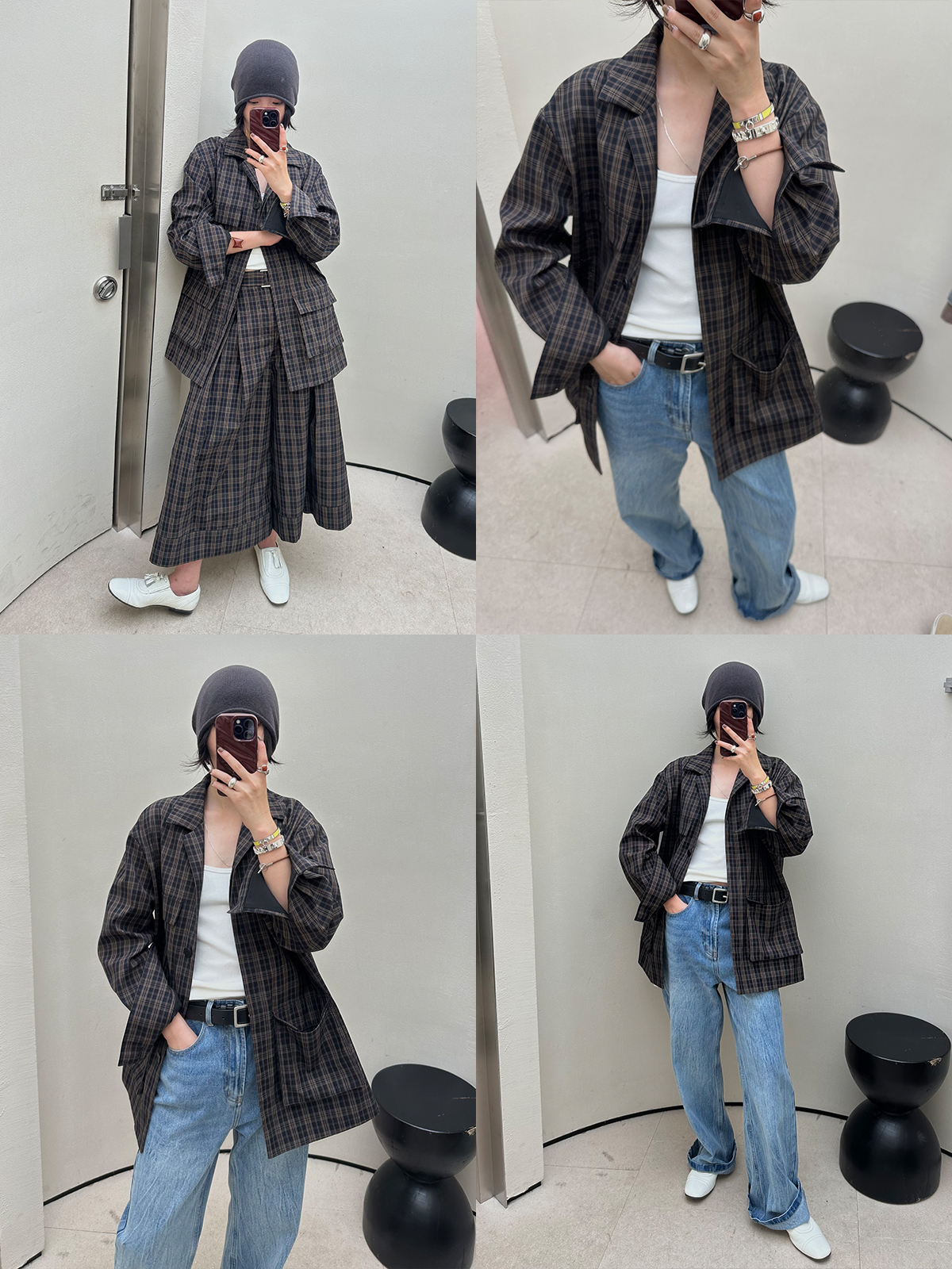 HIDEMI自然水洗亚麻轻薄宽松廓形T恤休闲四件套短袖长袖半裙长裤阿贝贝套装