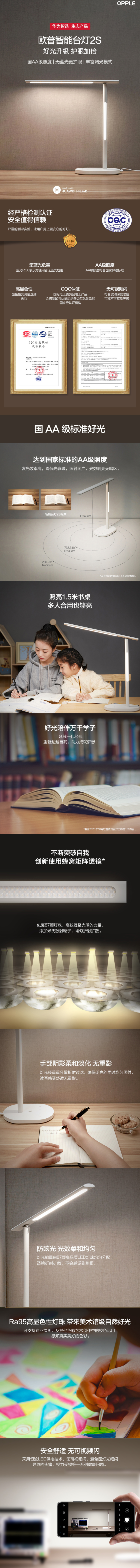 华为智选 欧普智能读写台灯2S 国AA护眼无蓝光防眩光CQC学习台灯 读写学生阅读床头卧室折叠语音控制台灯商用