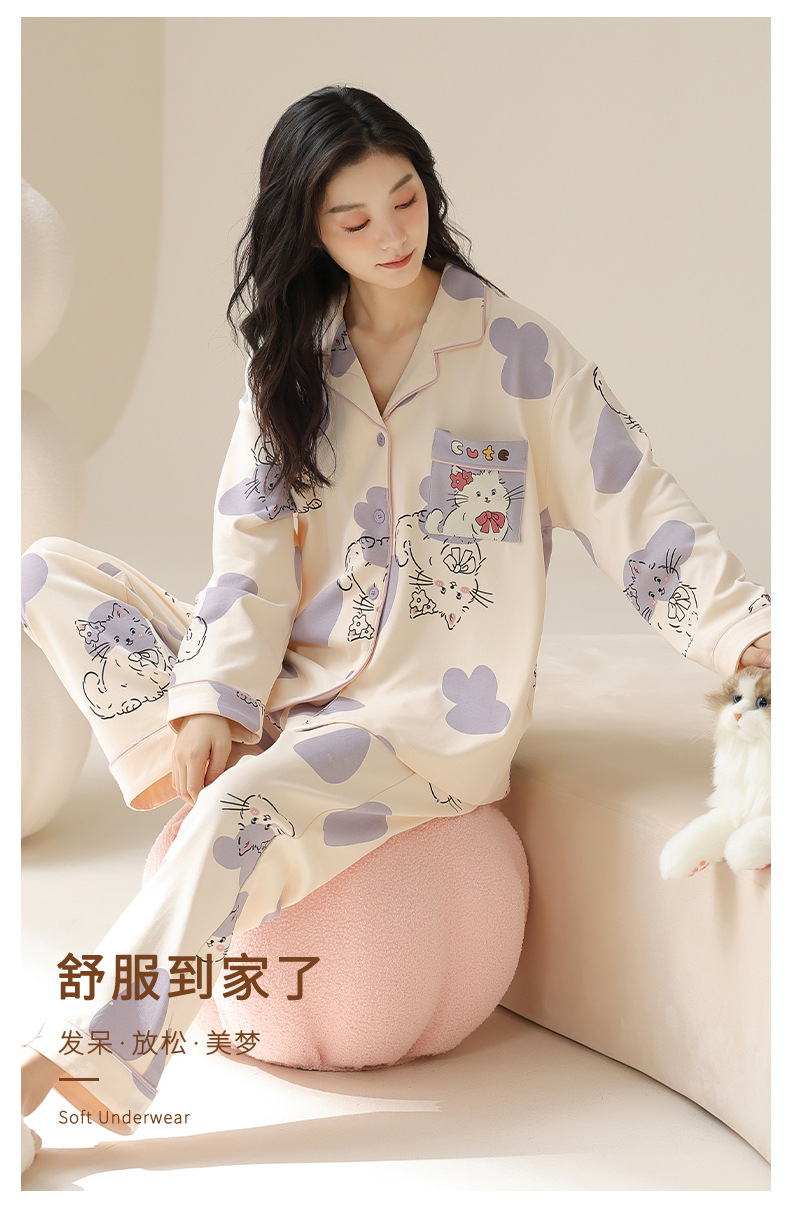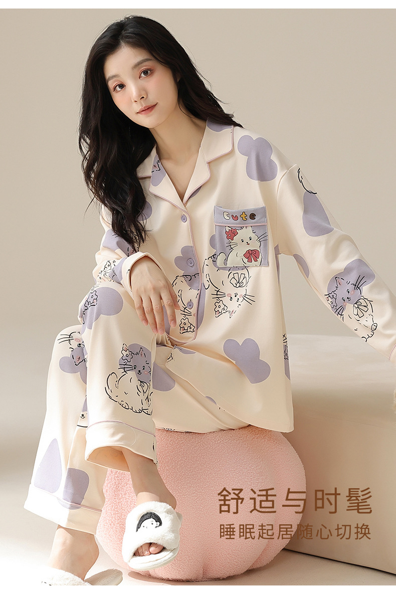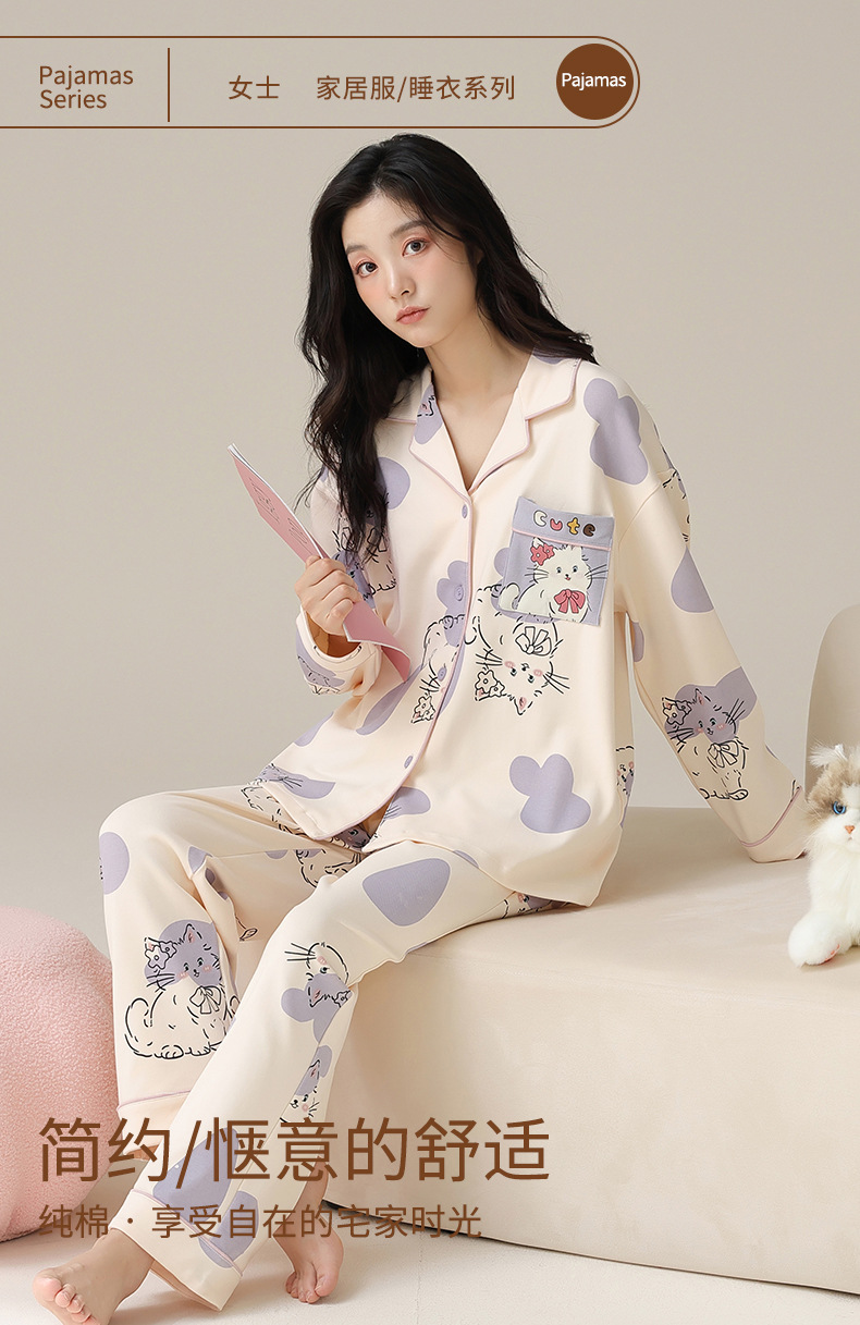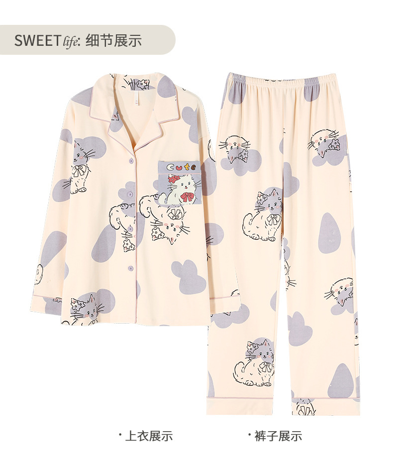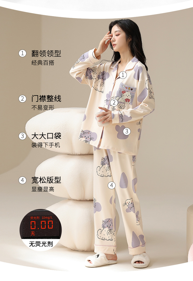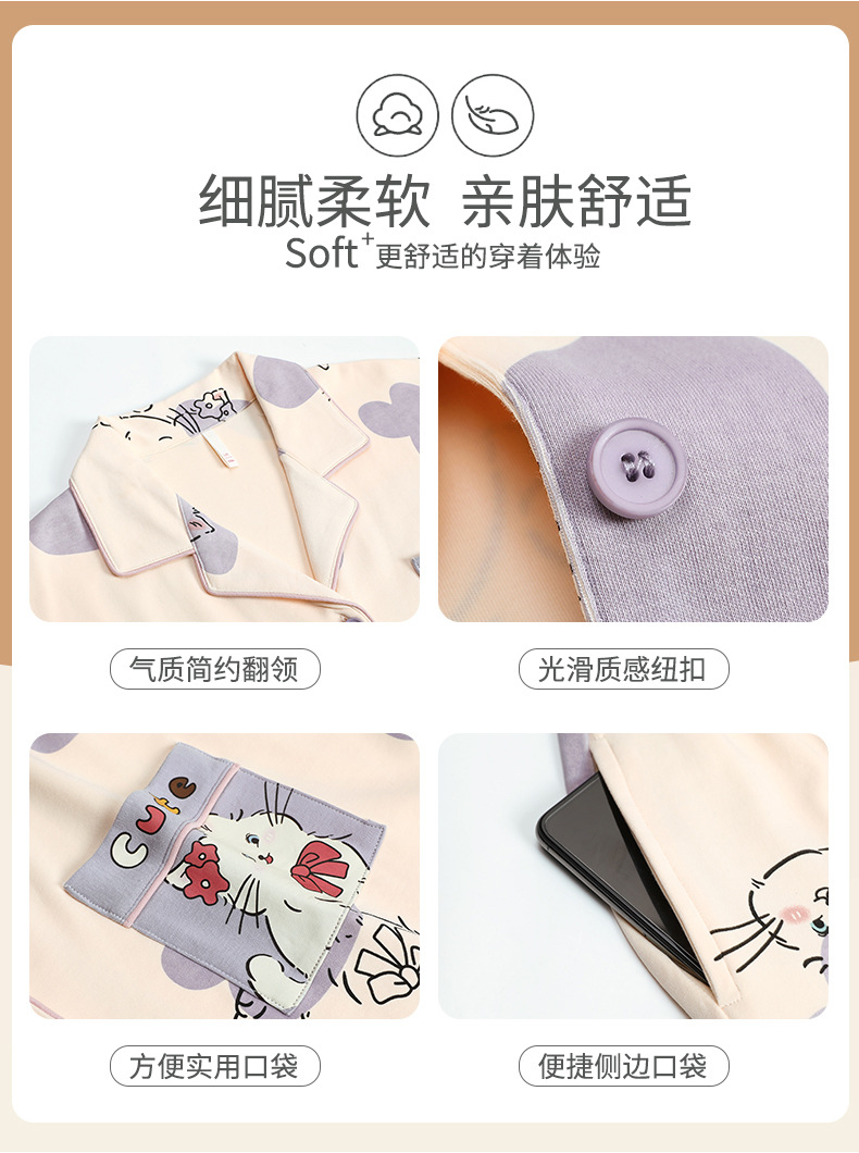 可人儿春秋季2024新款纯棉睡衣女韩版开衫长袖可外穿家居服套装