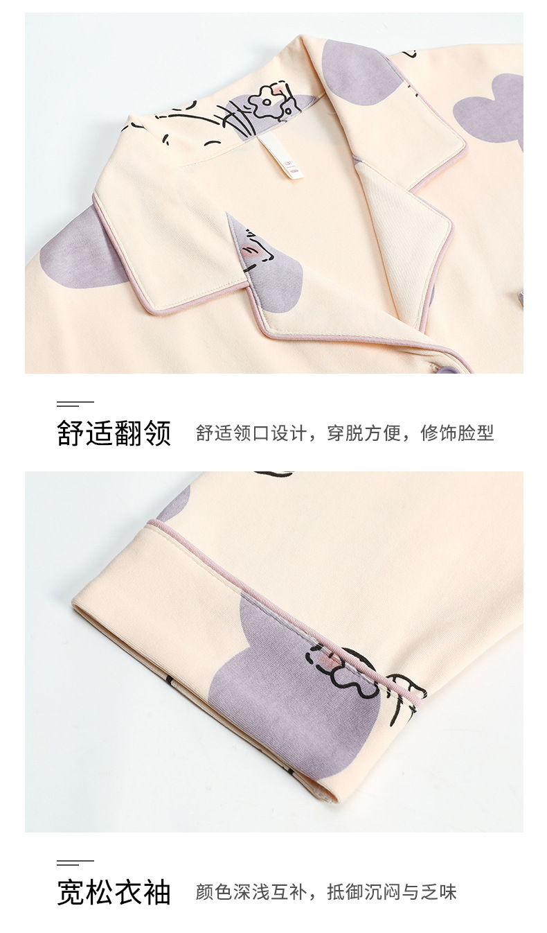 可人儿春秋季带胸垫奥力棉女士长袖长裤睡衣可外出纯棉家居服套装