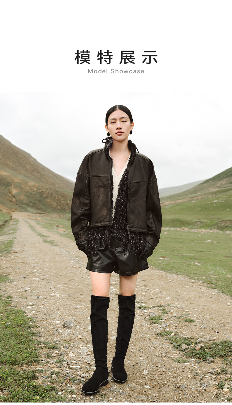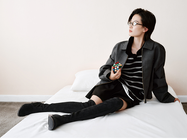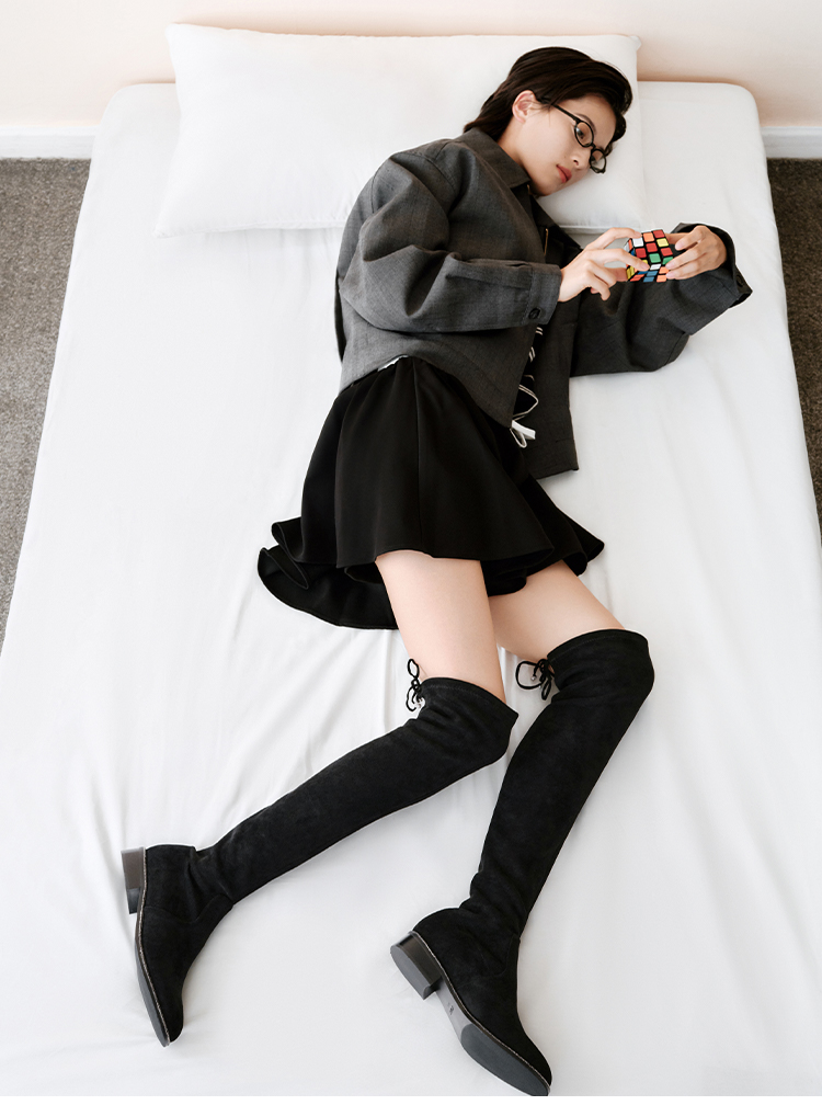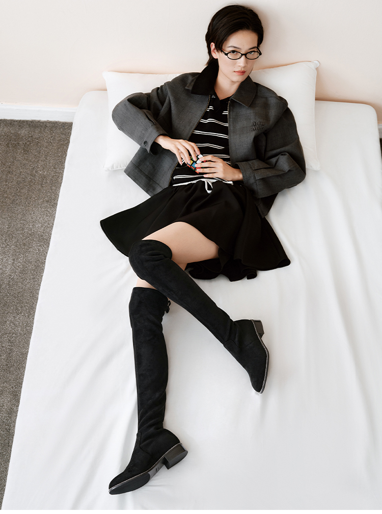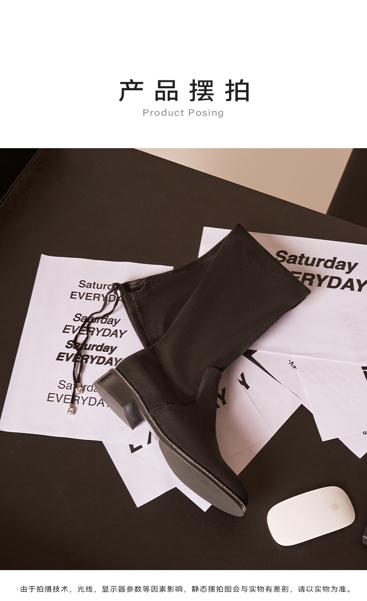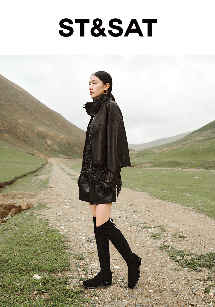 星期六钻条沿边显瘦高筒过膝长靴SSC4117343