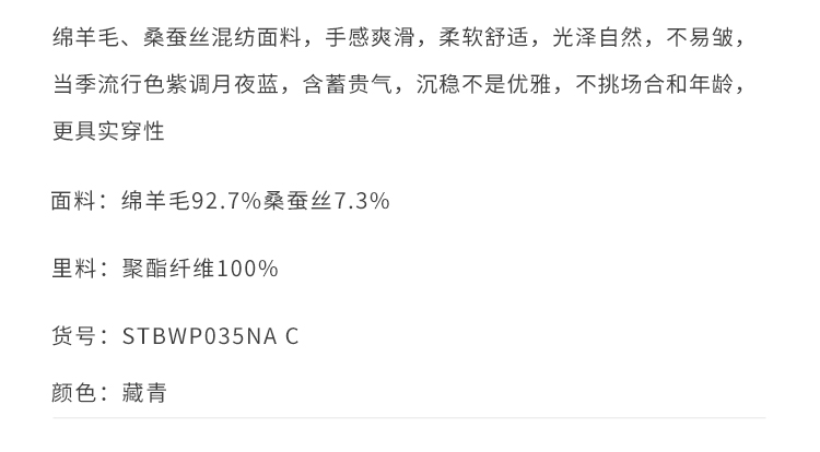 callisto藏青绵羊毛混纺西服 SPBWJ006NA