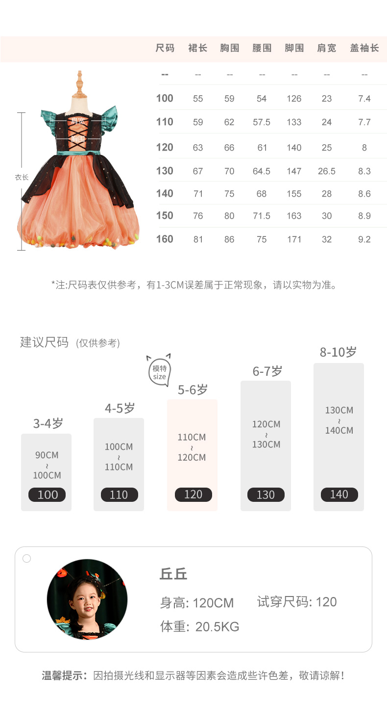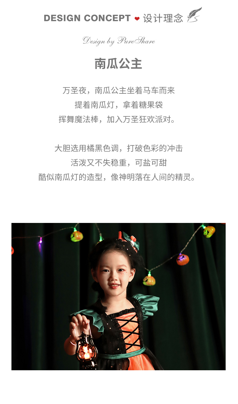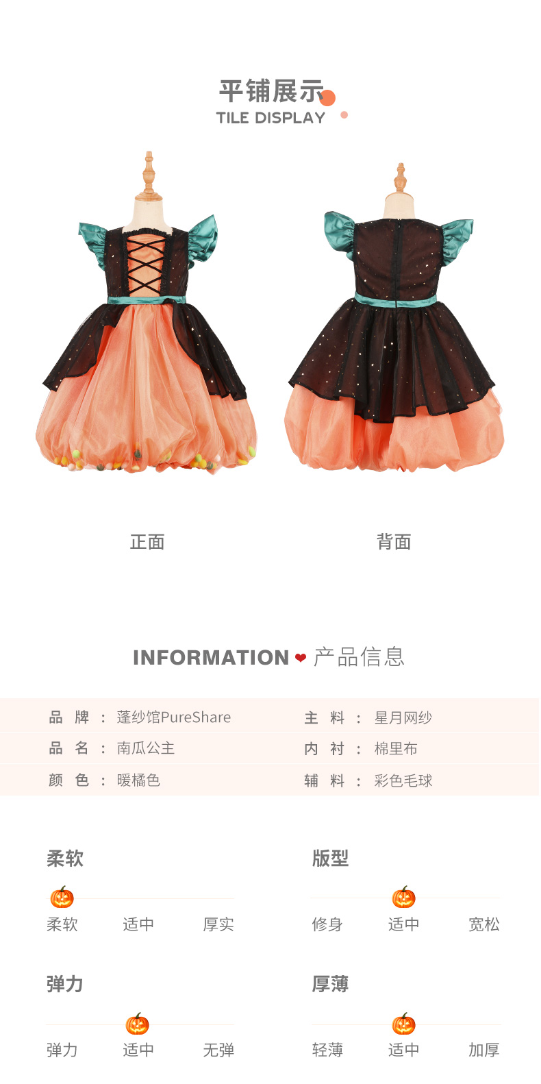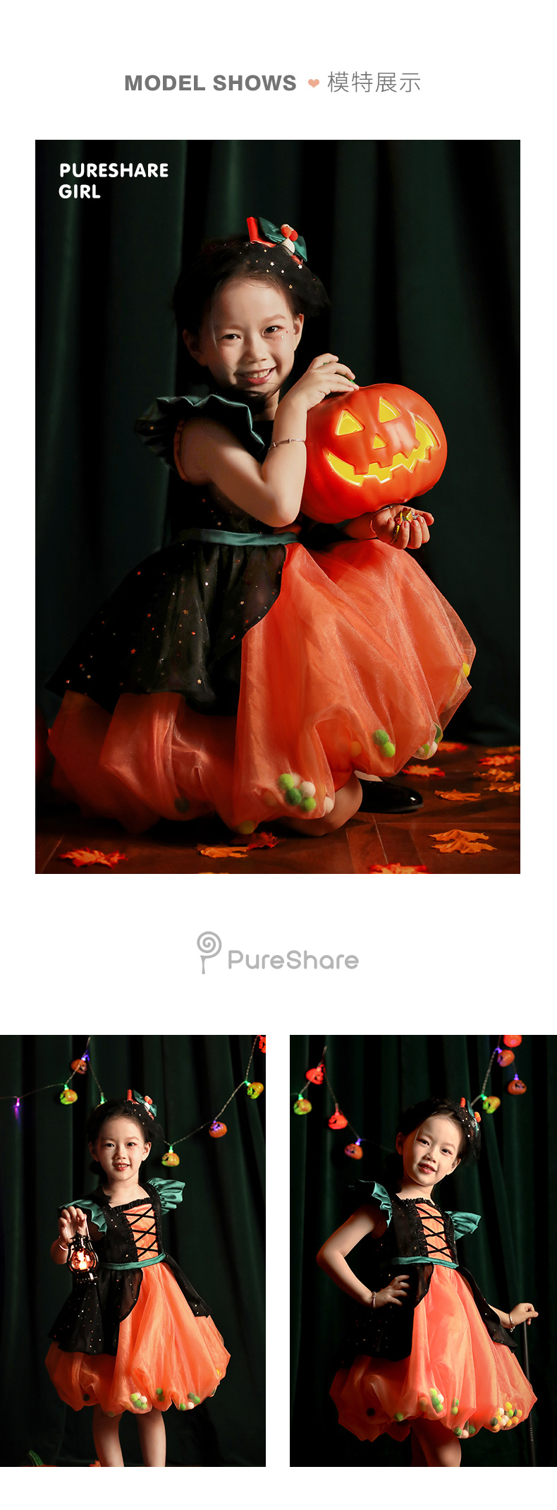 非质量问题不退换哦~pureshare 女童连衣裙新款秋装节日万圣派对公主裙礼服-南瓜公主
