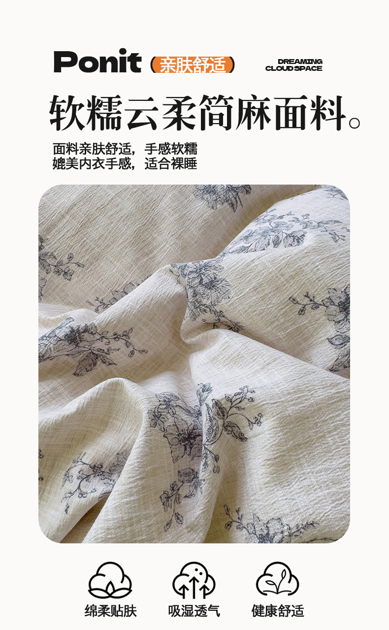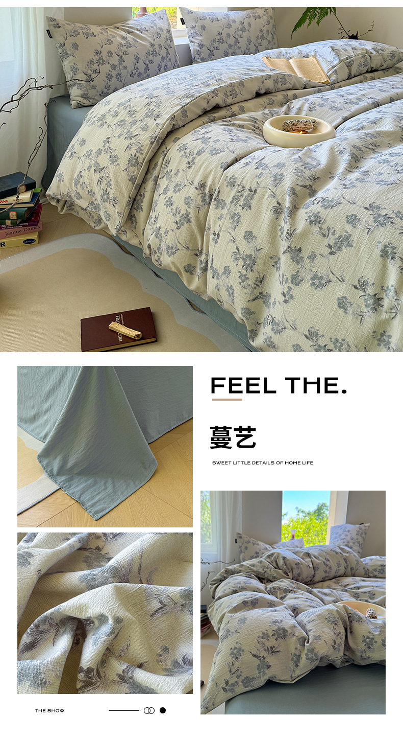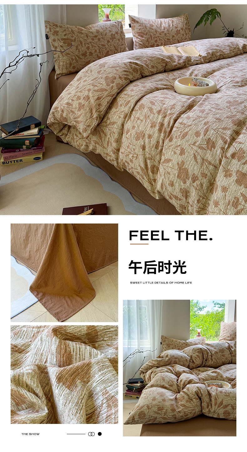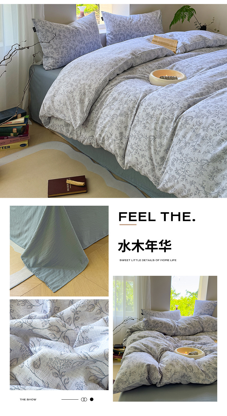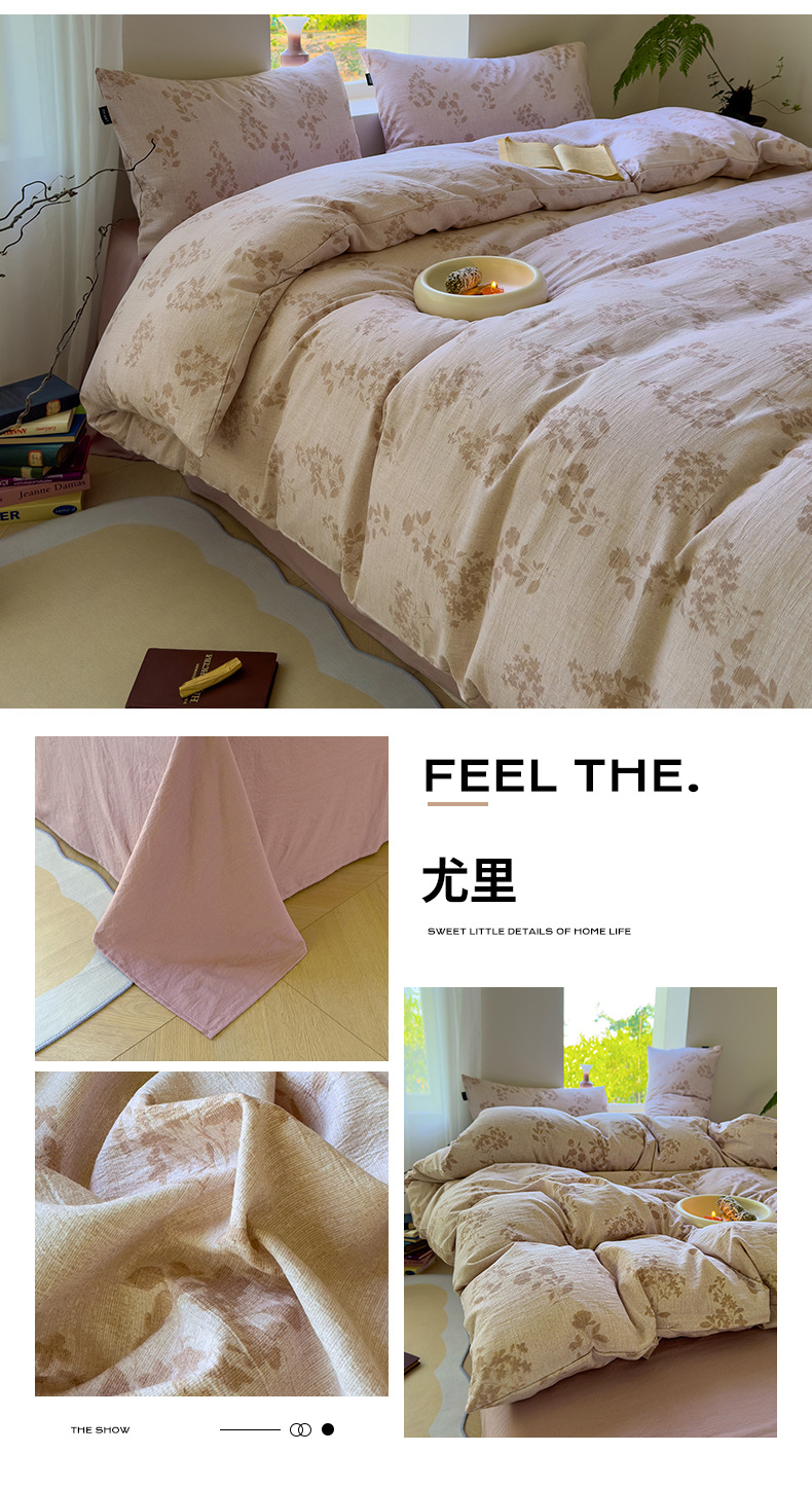 【YW】无忧购【甄选】复古风亚麻皱皱纱四件套提花床单被套(截单后3-5天发货)