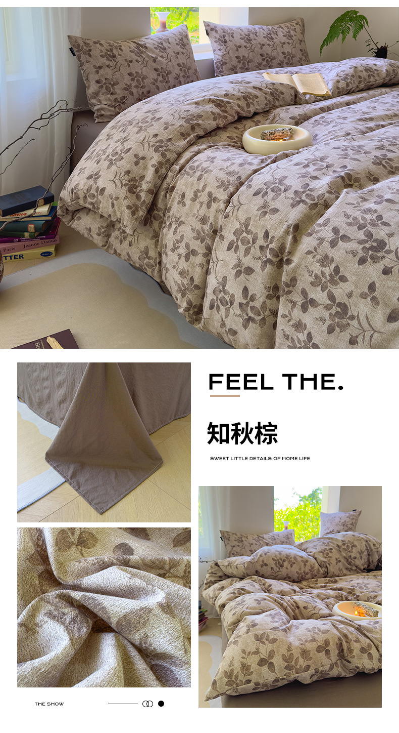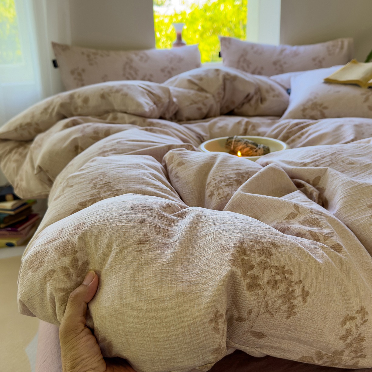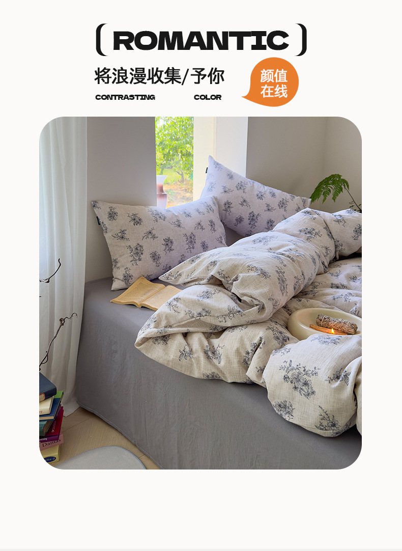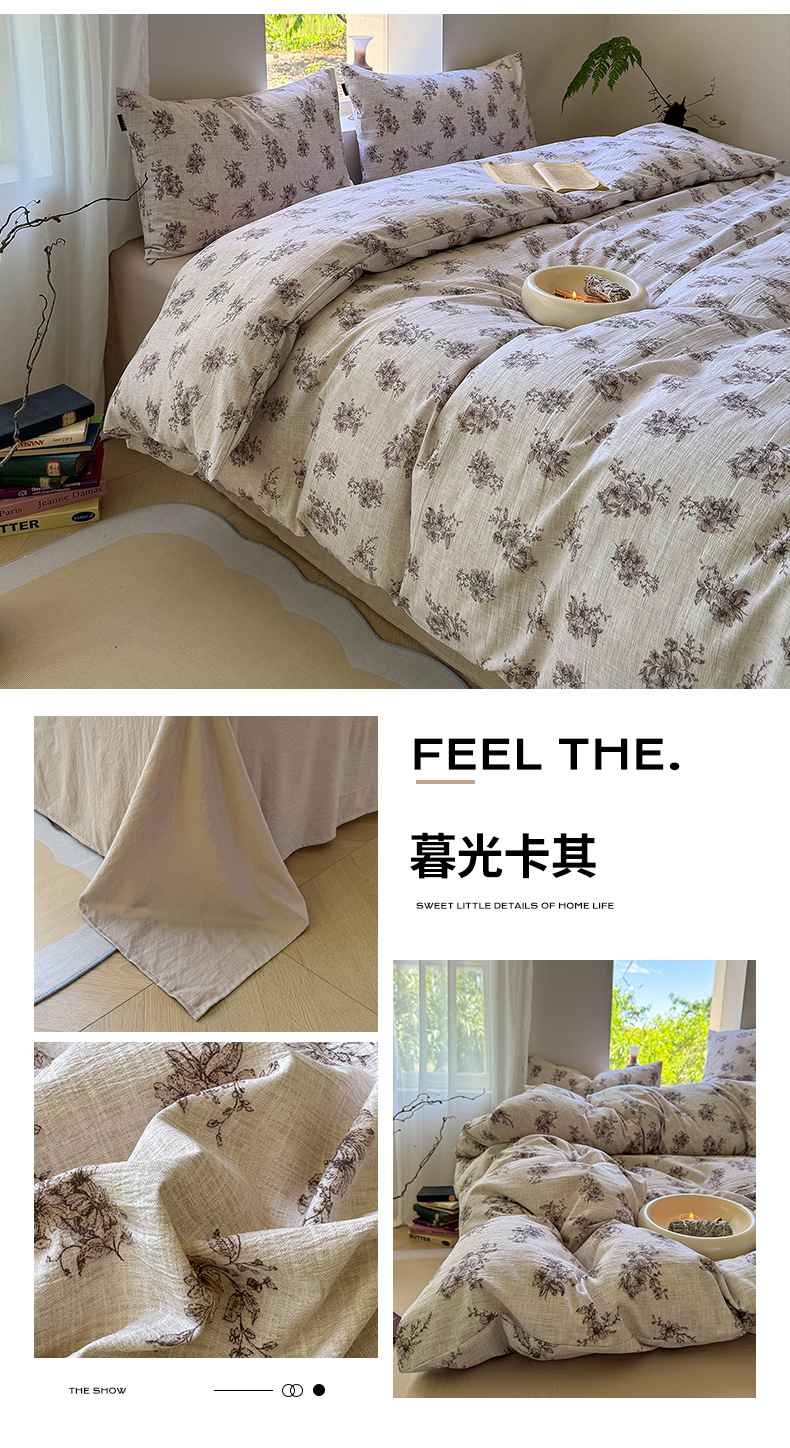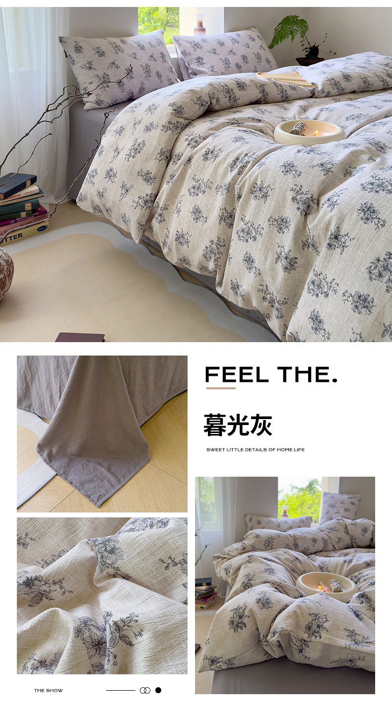 【YW】无忧购【甄选】复古风亚麻皱皱纱四件套提花床单被套(截单后3-5天发货)