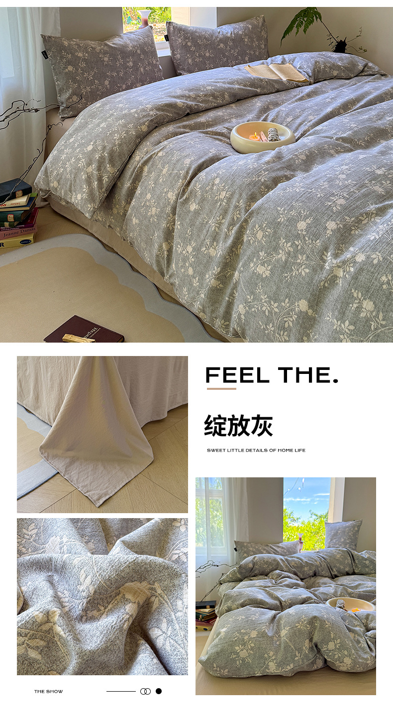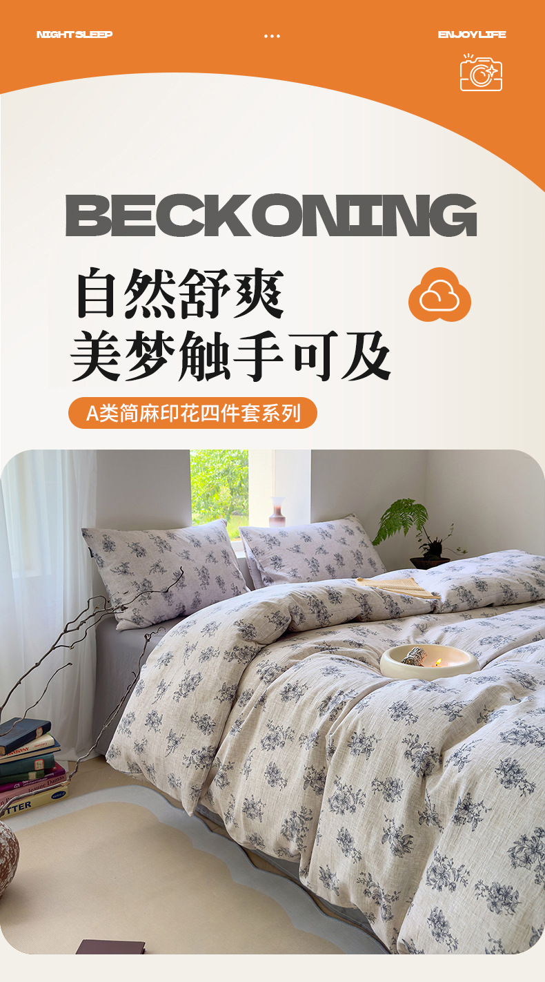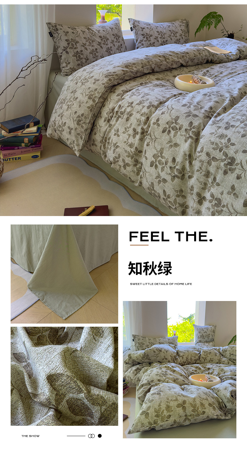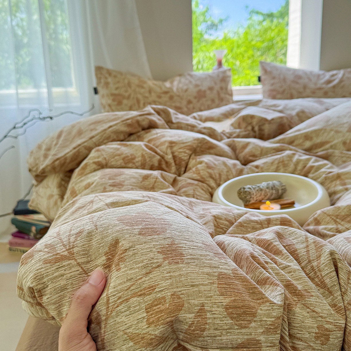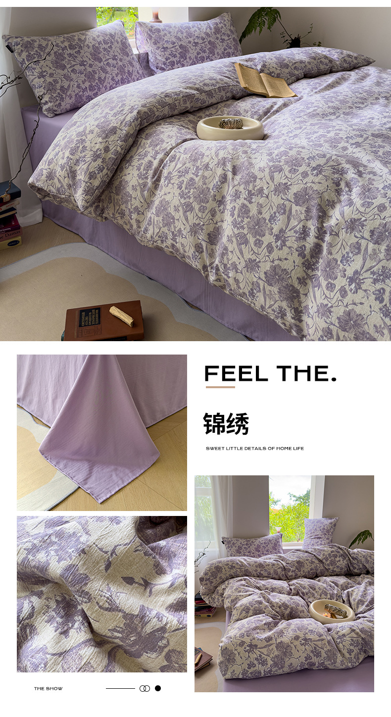 【YW】无忧购【甄选】复古风亚麻皱皱纱四件套提花床单被套(截单后3-5天发货)
