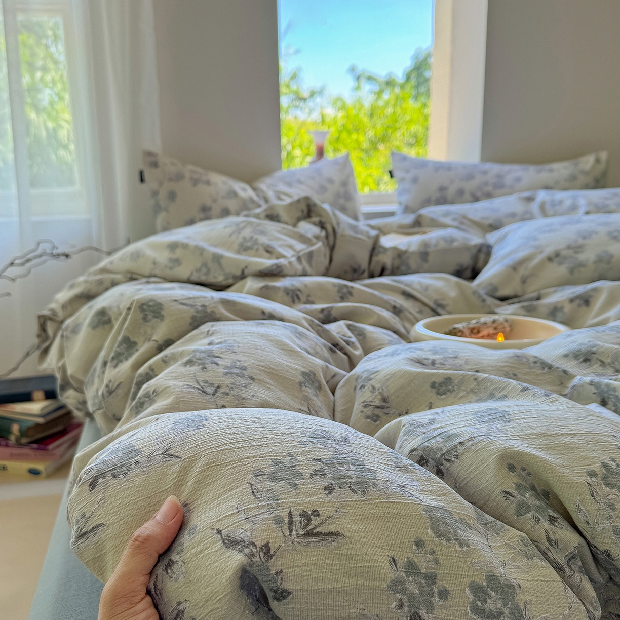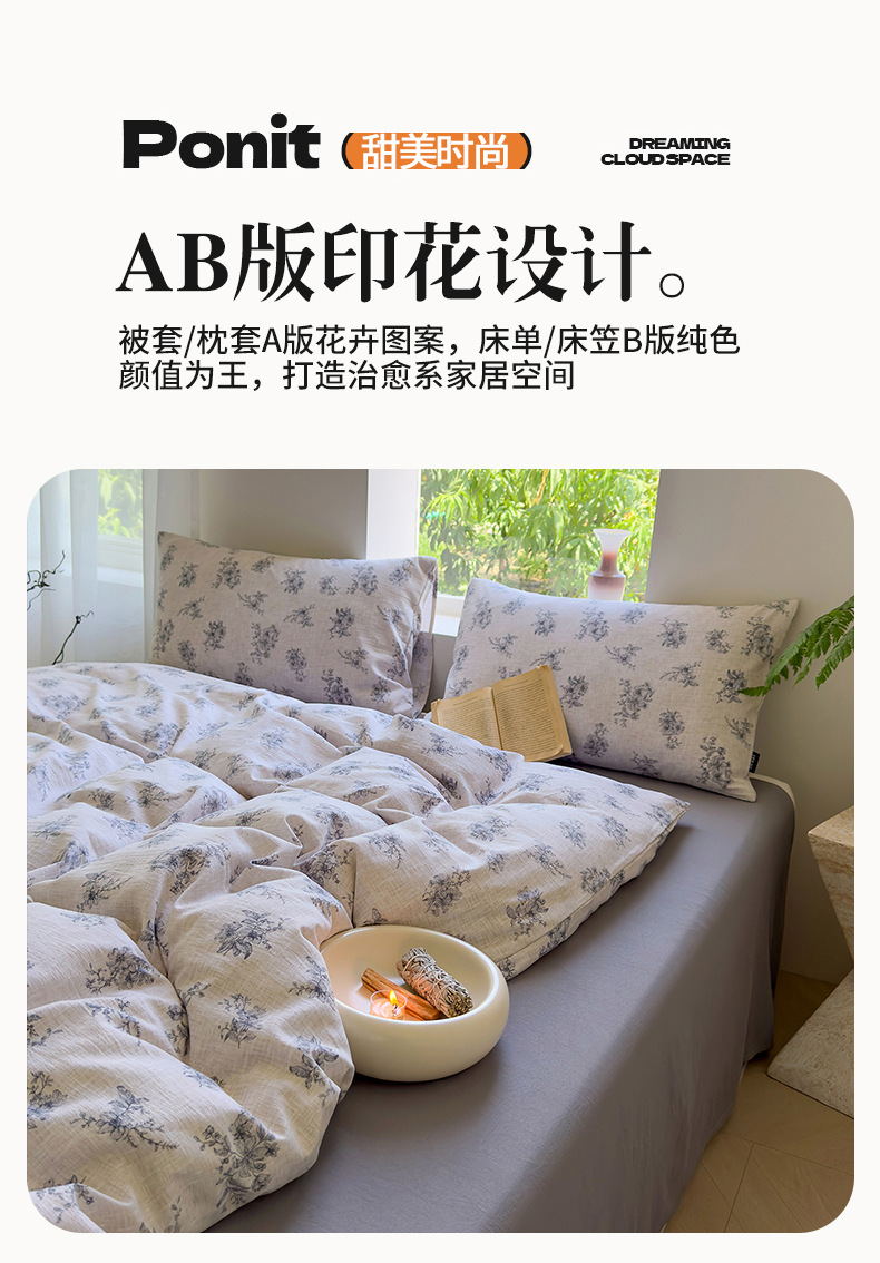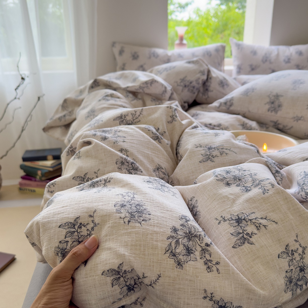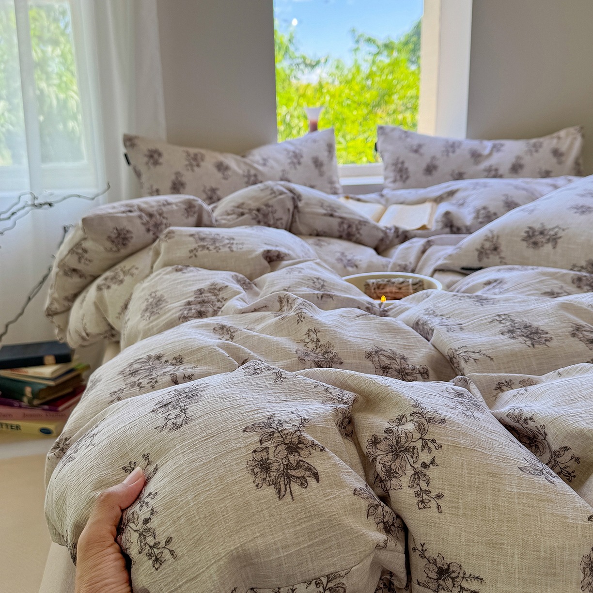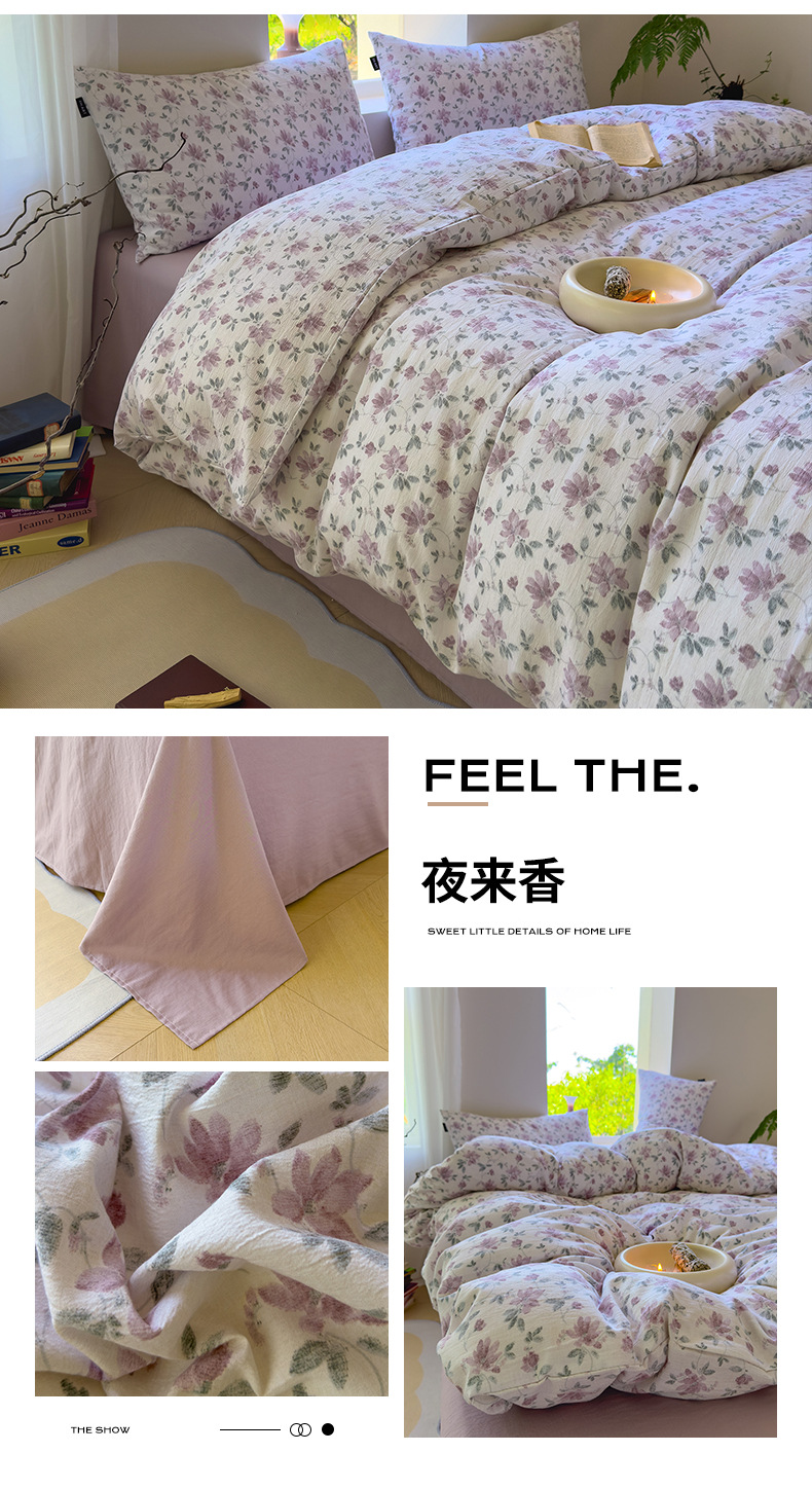 【YW】无忧购【甄选】复古风亚麻皱皱纱四件套提花床单被套(截单后3-5天发货)
