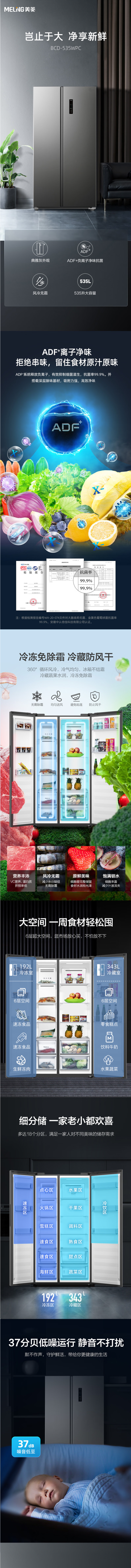 美菱(MeiLing)(202639)BCD-535WPC对开双门冰箱 家用大容量双门风冷无霜ADF+离子净味超大容量 BCD-535WPC
