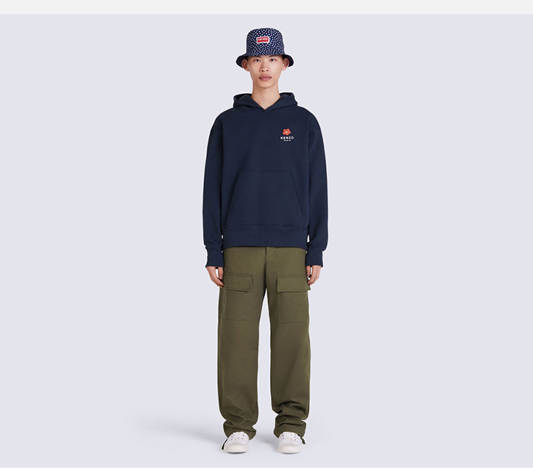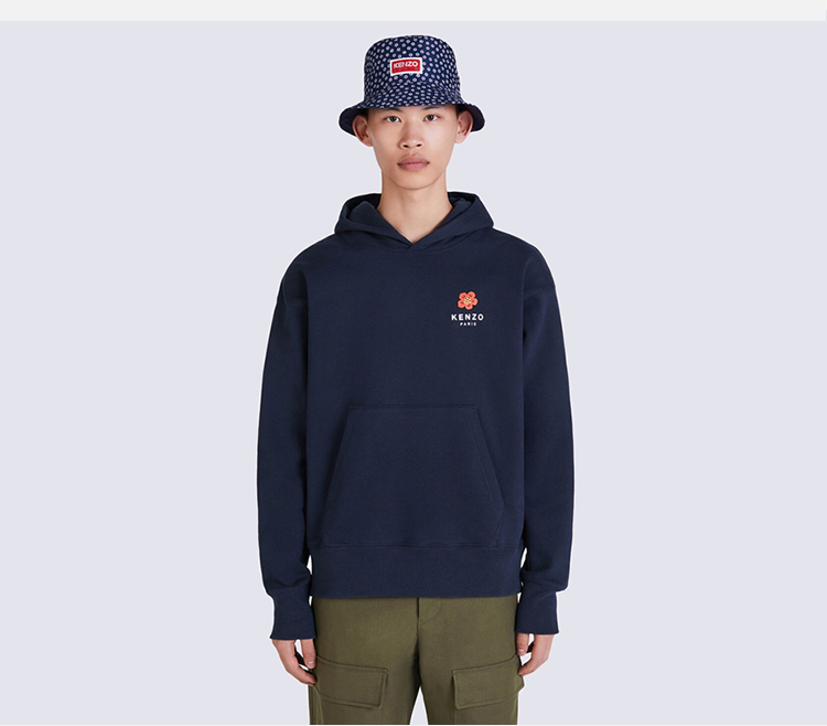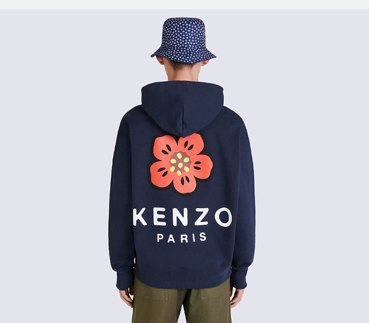KENZO 高田贤三 男士棉质 BOKE FLOWER POPPY花朵印花大廓形长袖连帽卫衣 蓝色 FC65 SW460 4ME 77