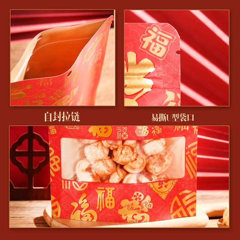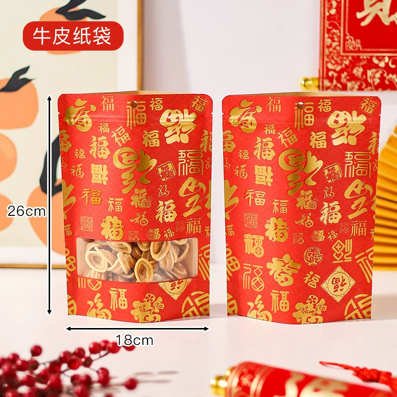 18*26cm 红色 百福拉链袋 饼干礼品坚果干货包装袋 牛皮纸拉链袋