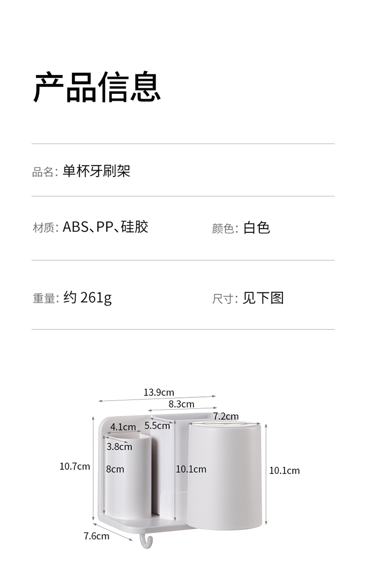 FaSoLa单杯牙刷架免打孔刷牙杯漱口杯置物架壁挂式卫生间家庭牙缸牙具挂架