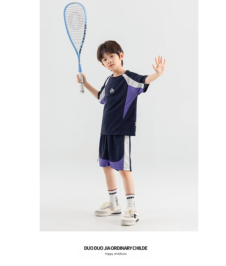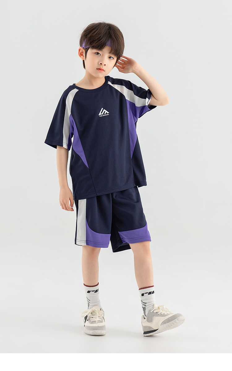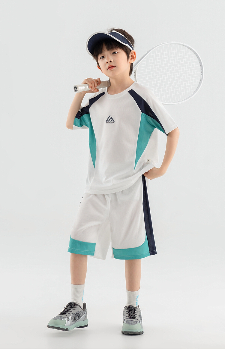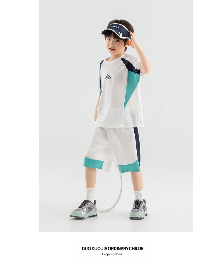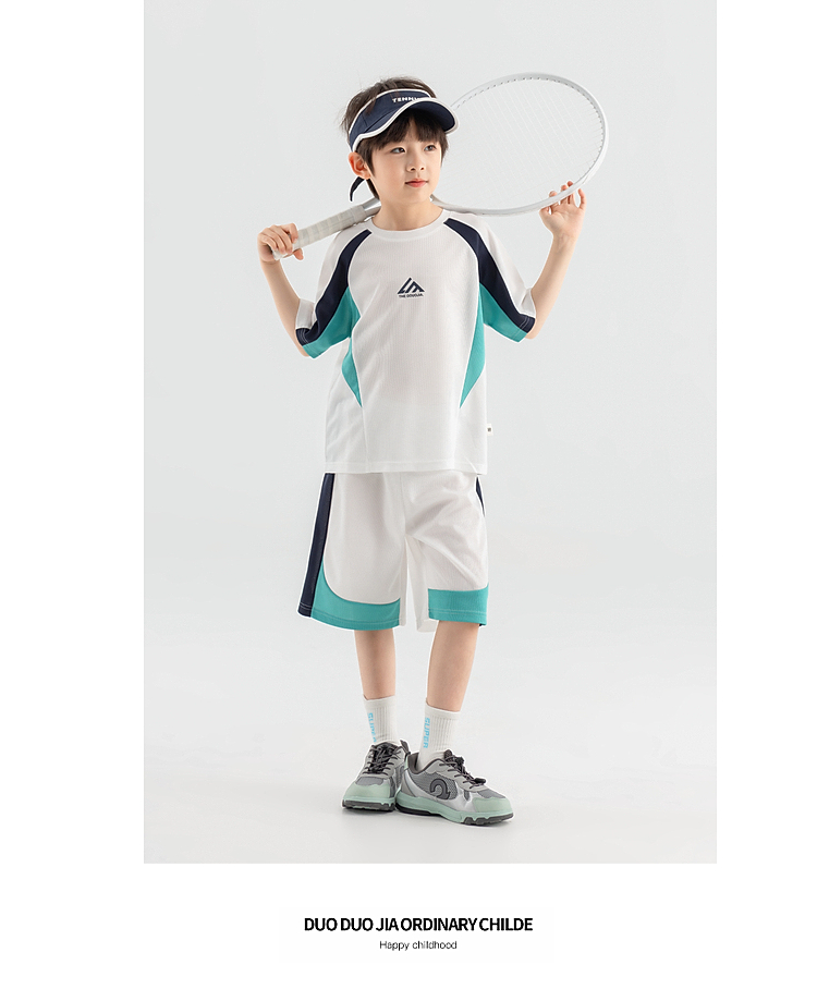 【团购价49.9-59.9】多多家男童运动套装2025新款夏装儿童中大童撞色拼接网眼两件套潮10650