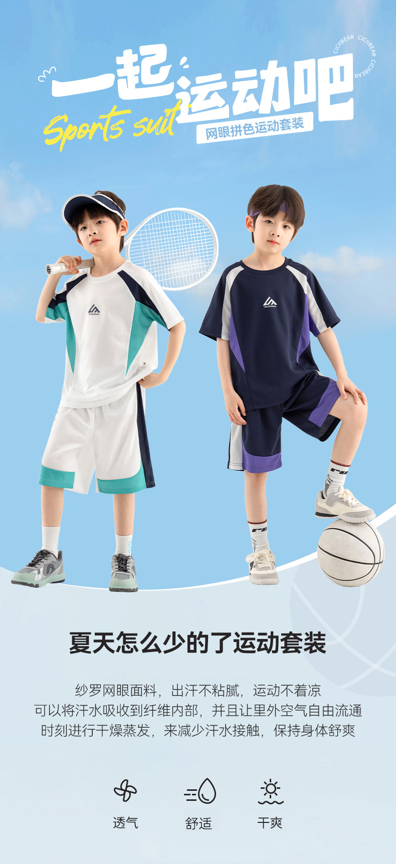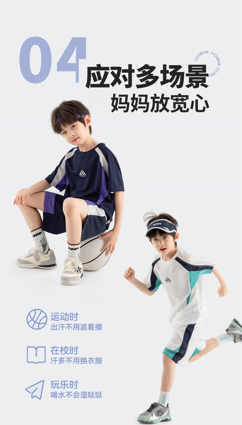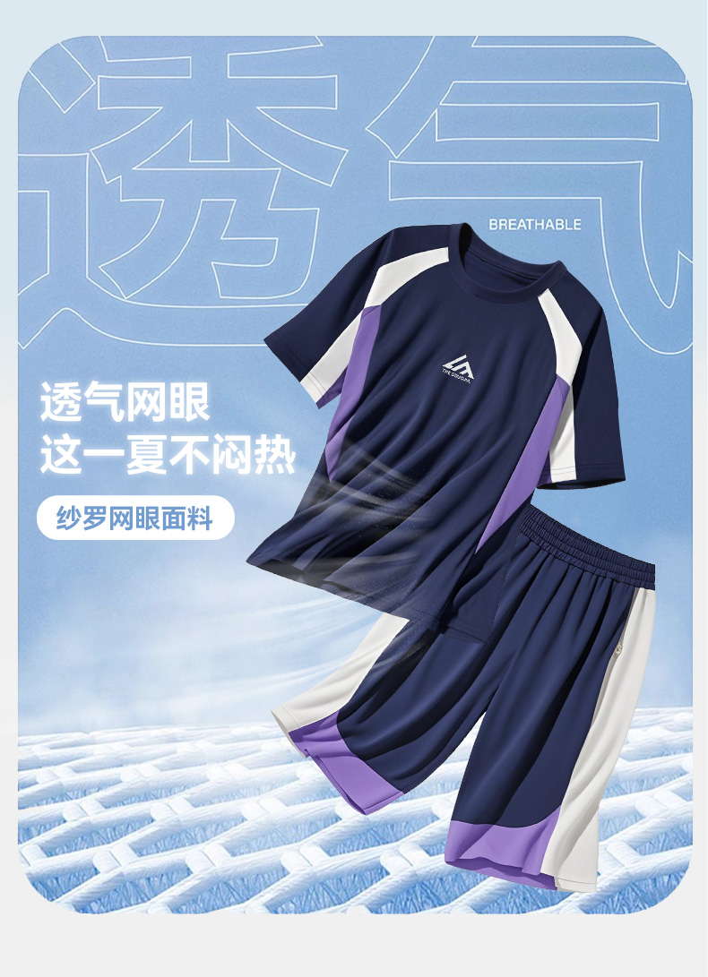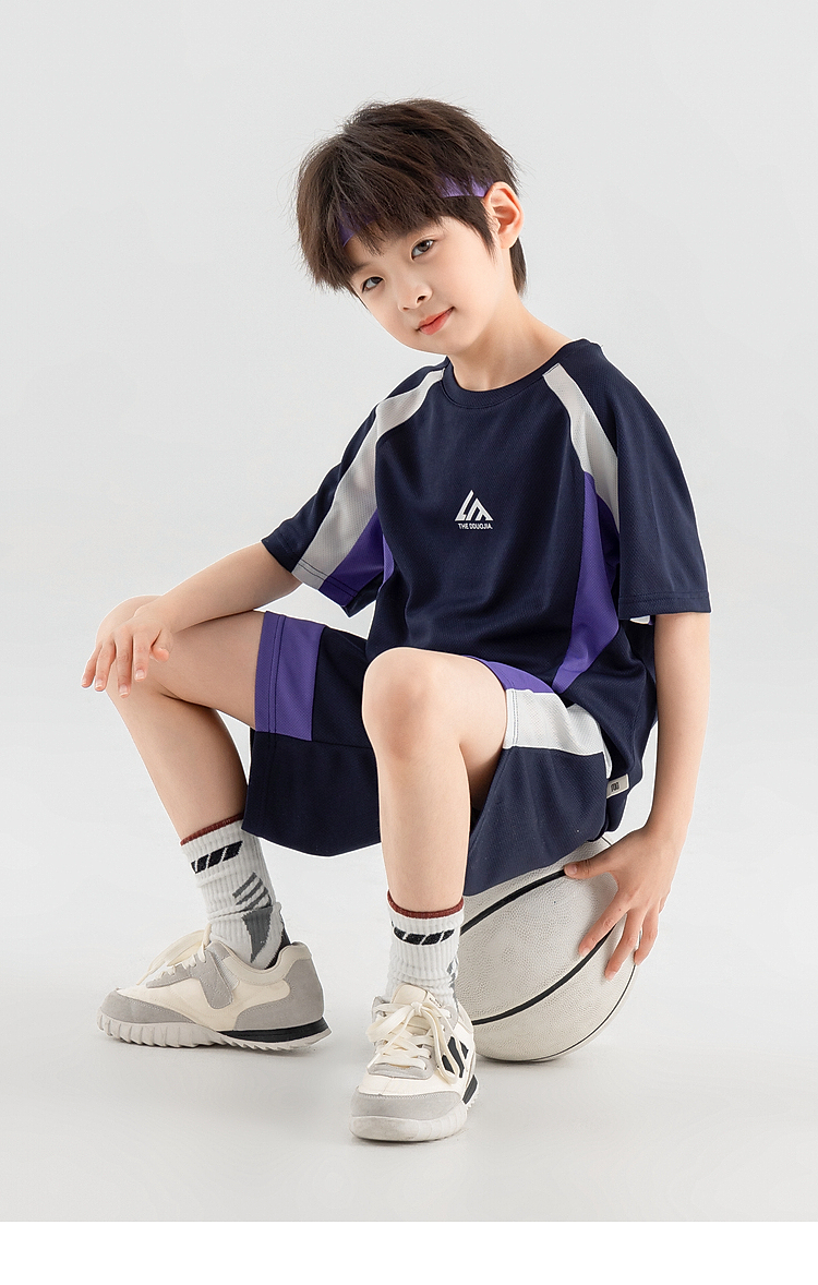 【团购价49.9-59.9】多多家男童运动套装2025新款夏装儿童中大童撞色拼接网眼两件套潮10650