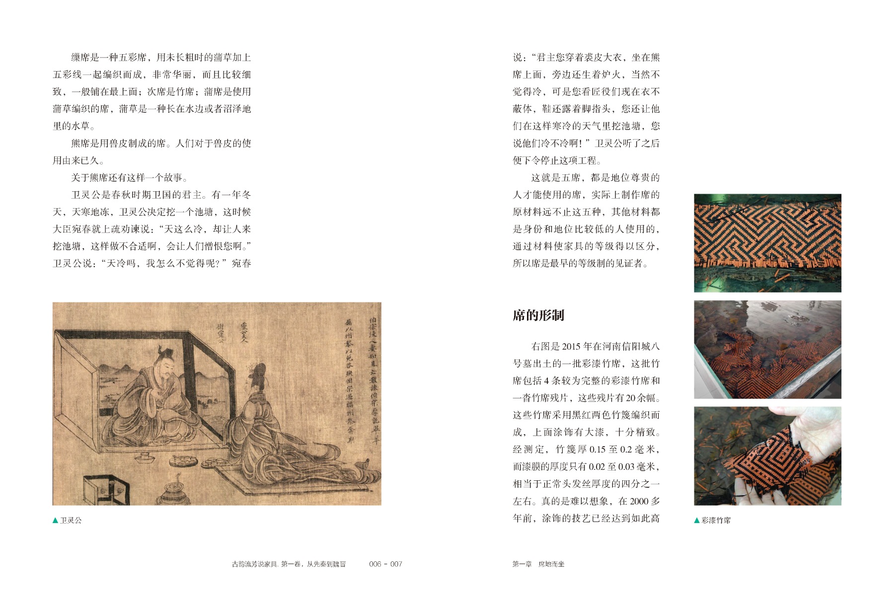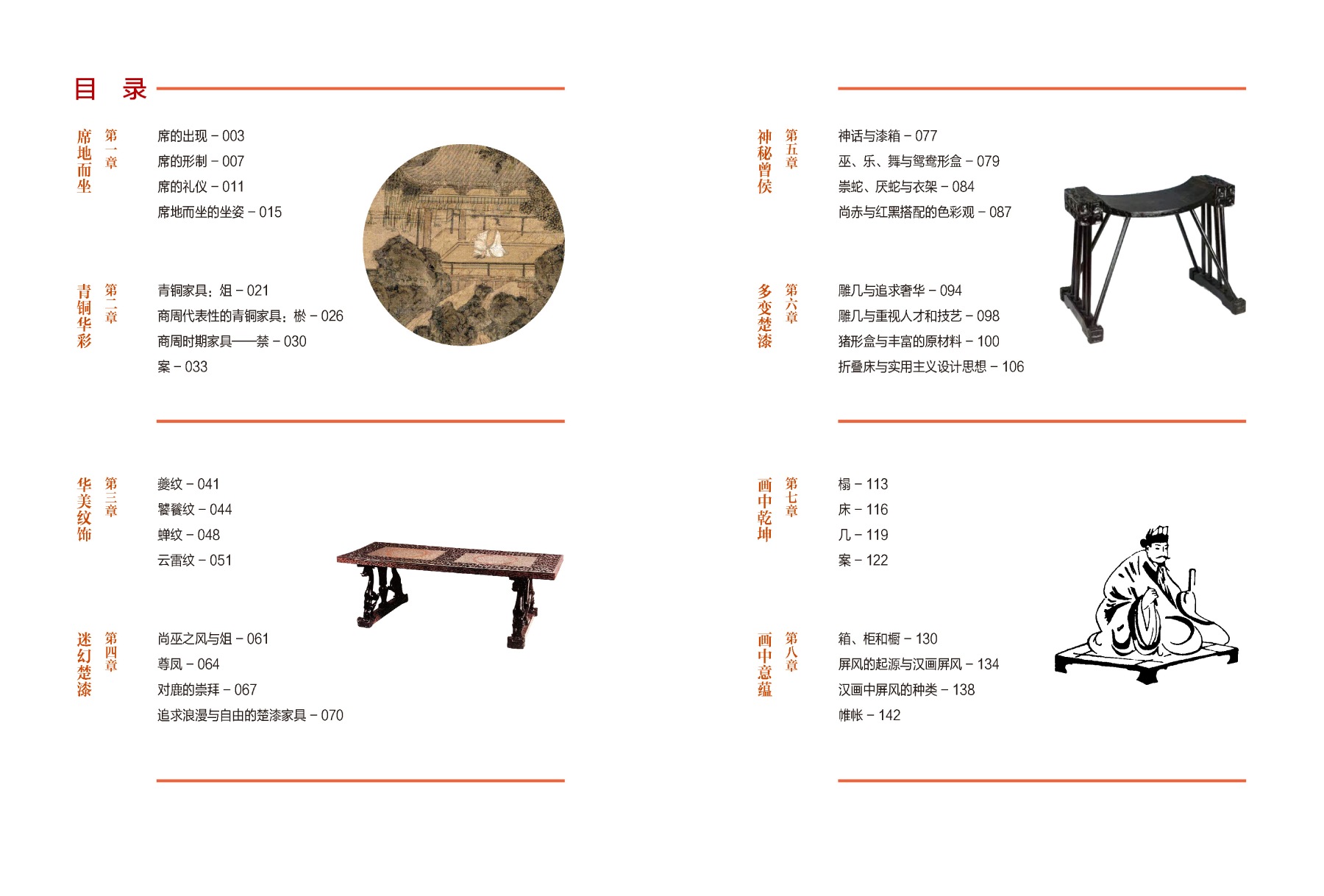 本书共十五章,涵盖了从商周时期到魏晋南北朝时期的家具历史,选取一些容易引起关注的,与当代生活紧密相关的话题,层层深入,由表及里,为观众深入浅出得讲解古代家具,更容易引起大家的兴趣,从而让读者走进辉煌灿烂的中国古代家具世界。