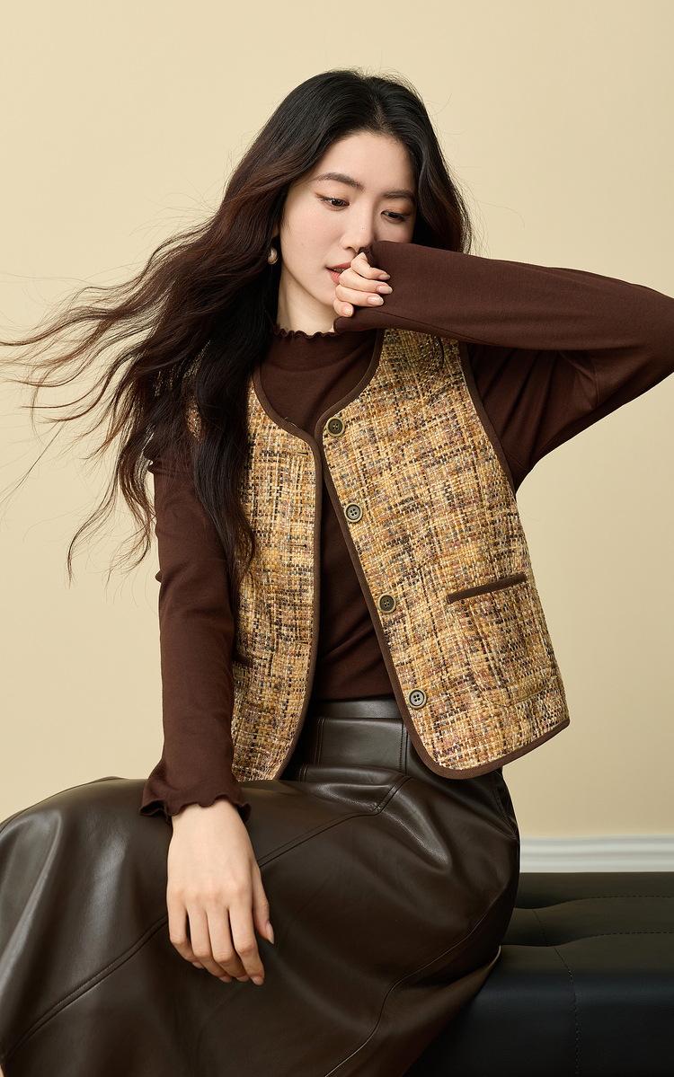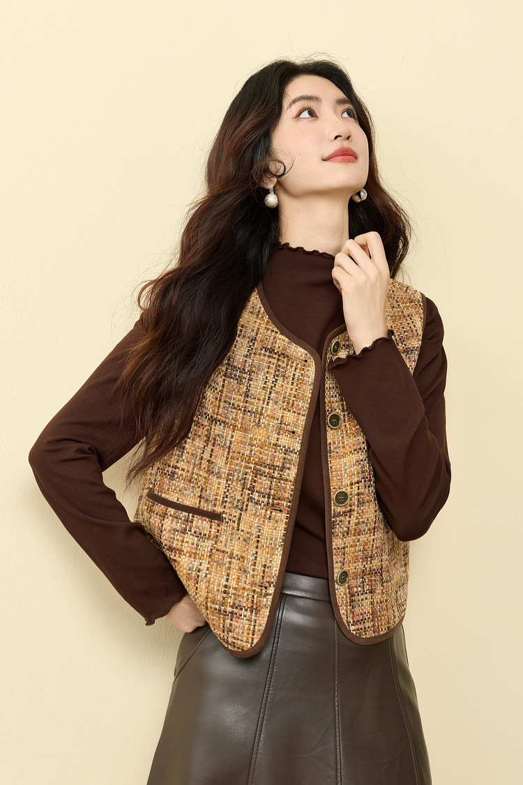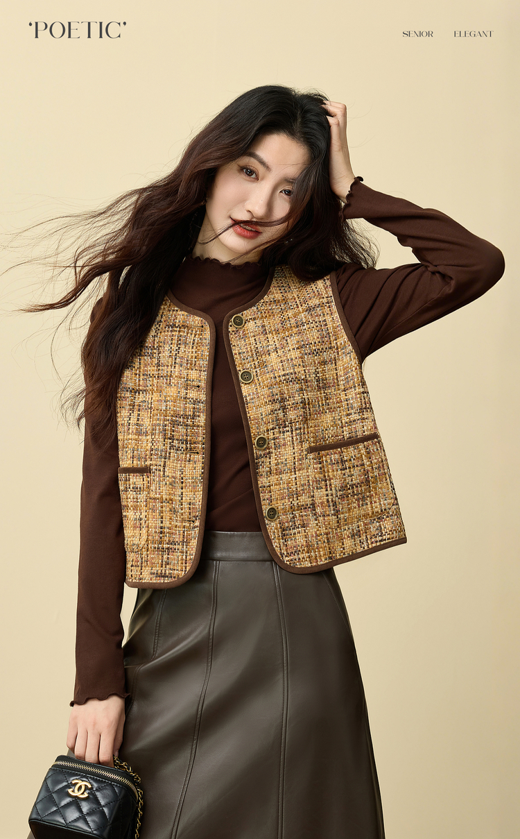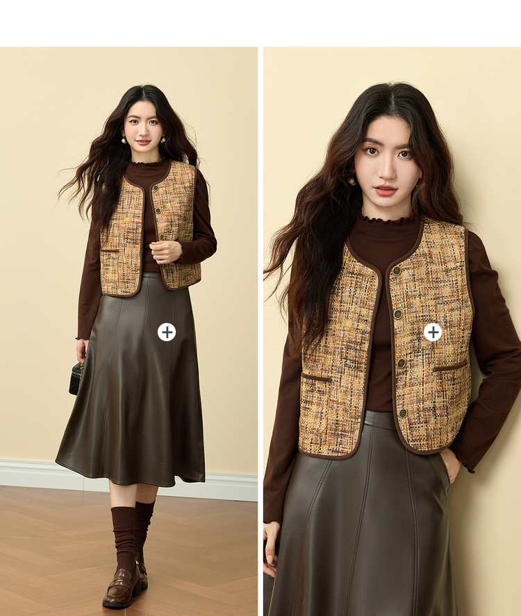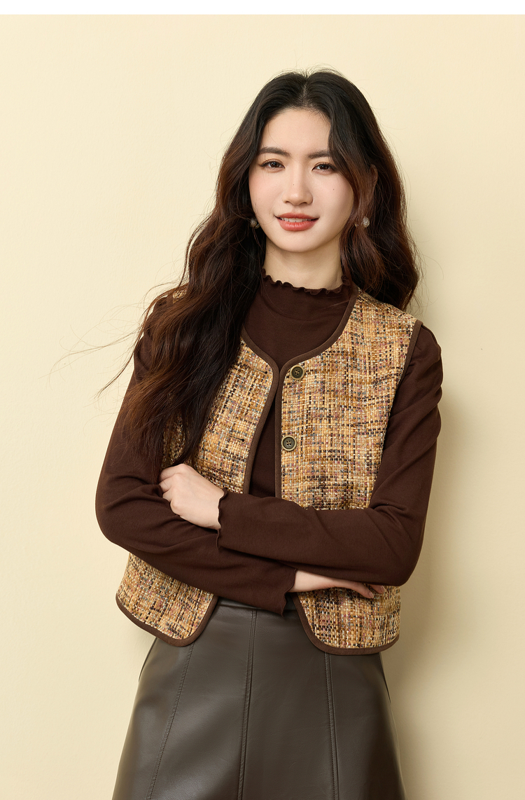【11/19新品】熙世界巨好看的小香风马甲女秋冬设计感无袖坎肩背心外穿短款马夹