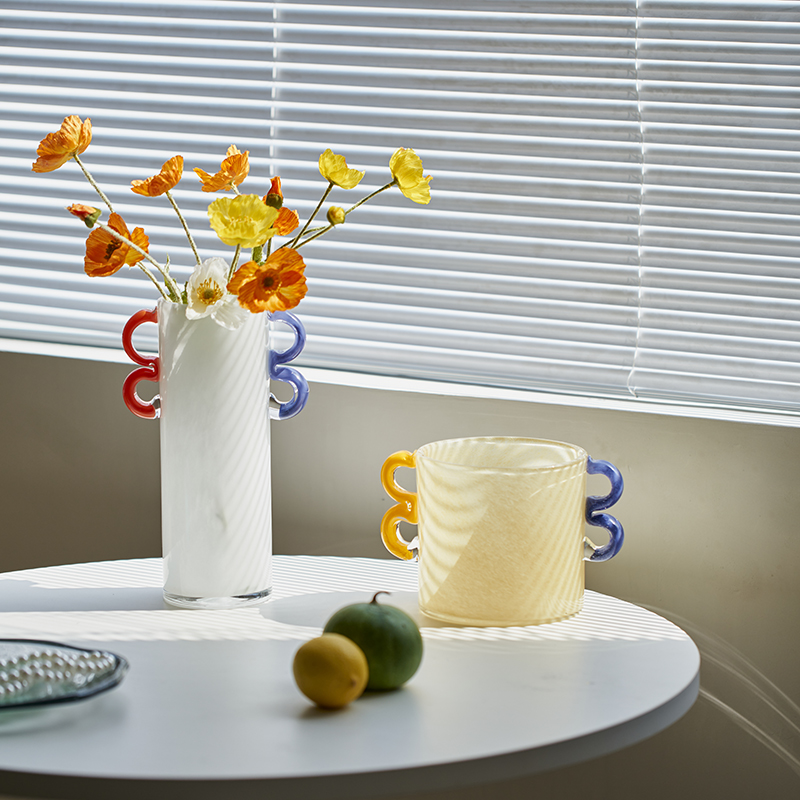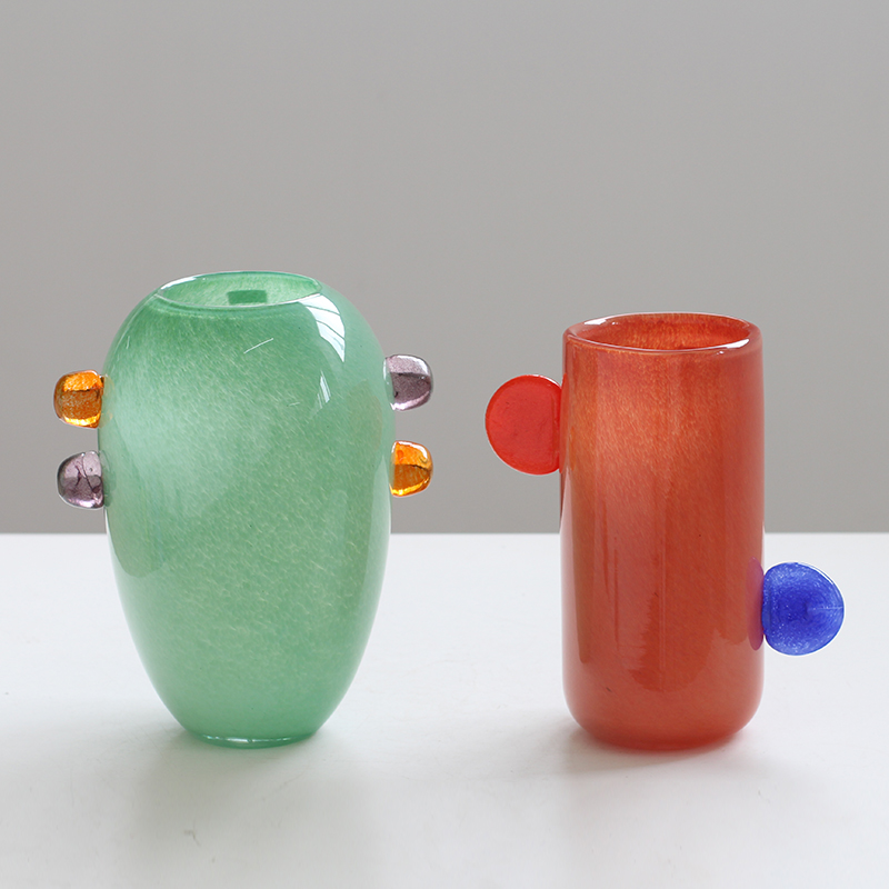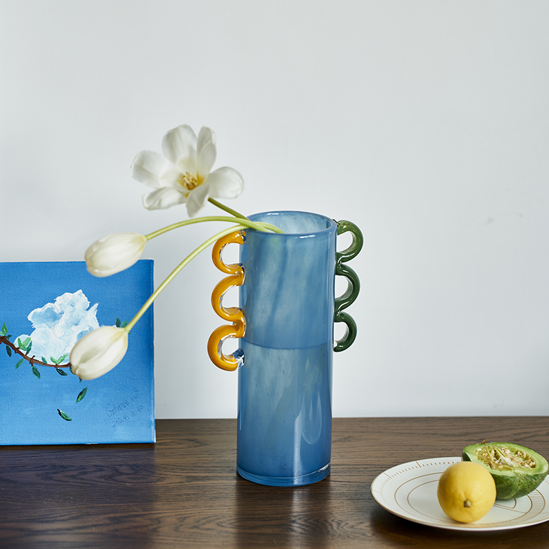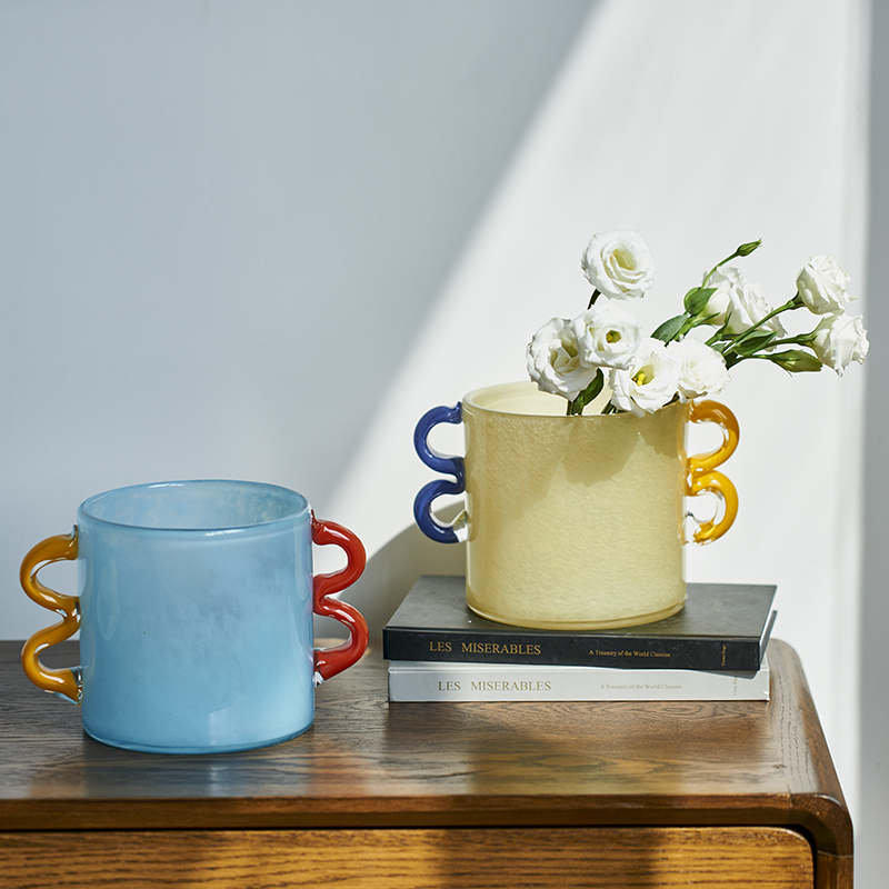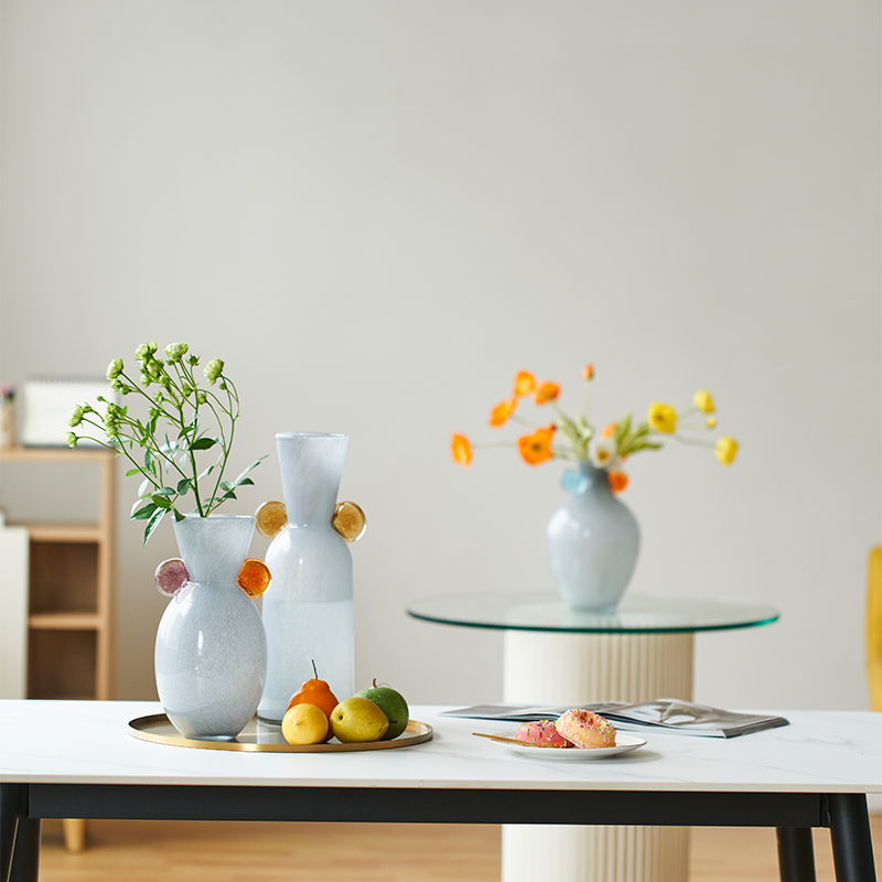 新款预售10天 磁粉手把彩色玻璃花瓶花插餐桌花器工艺品摆件