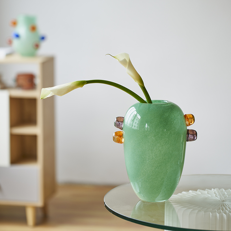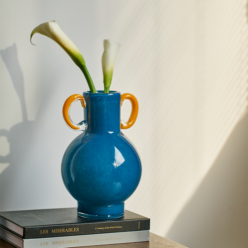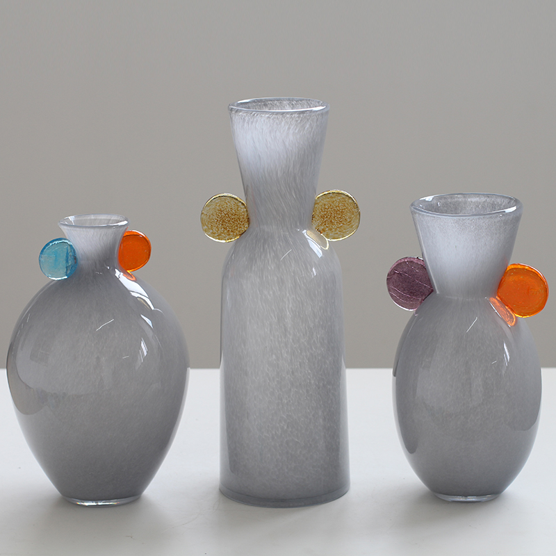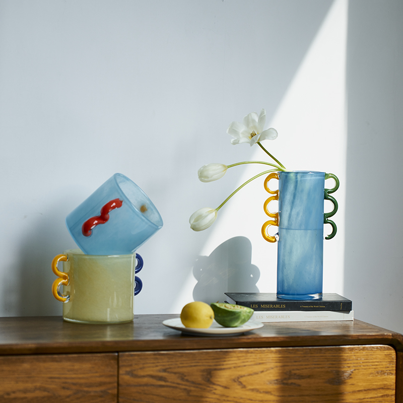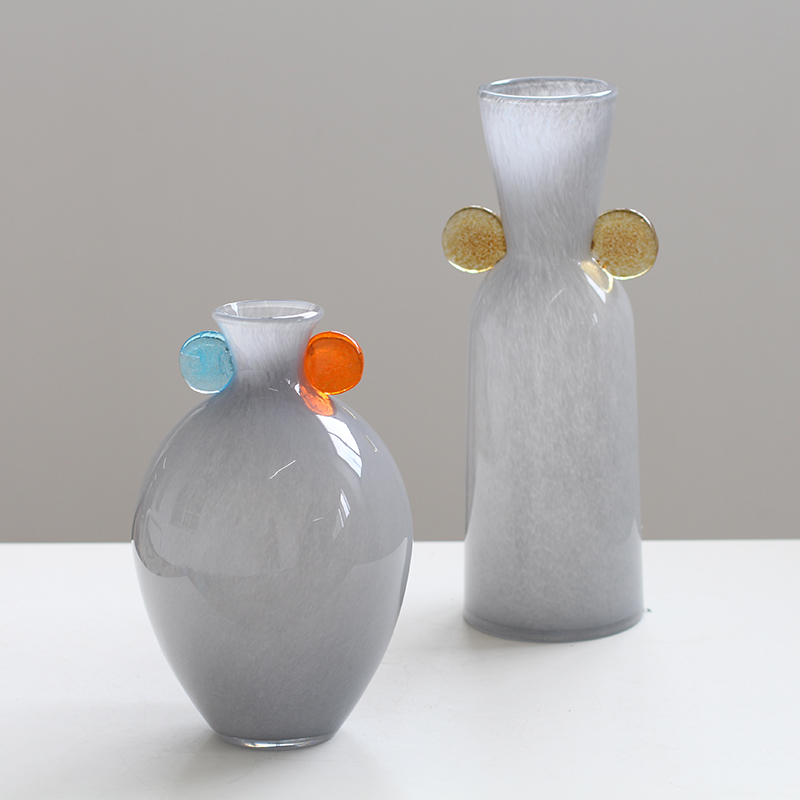 新款预售10天 磁粉手把彩色玻璃花瓶花插餐桌花器工艺品摆件