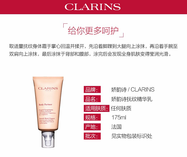 Clarins/娇韵诗抚纹身体霜175ml 淡化产后妊娠纹孕期紧致平滑肌肤