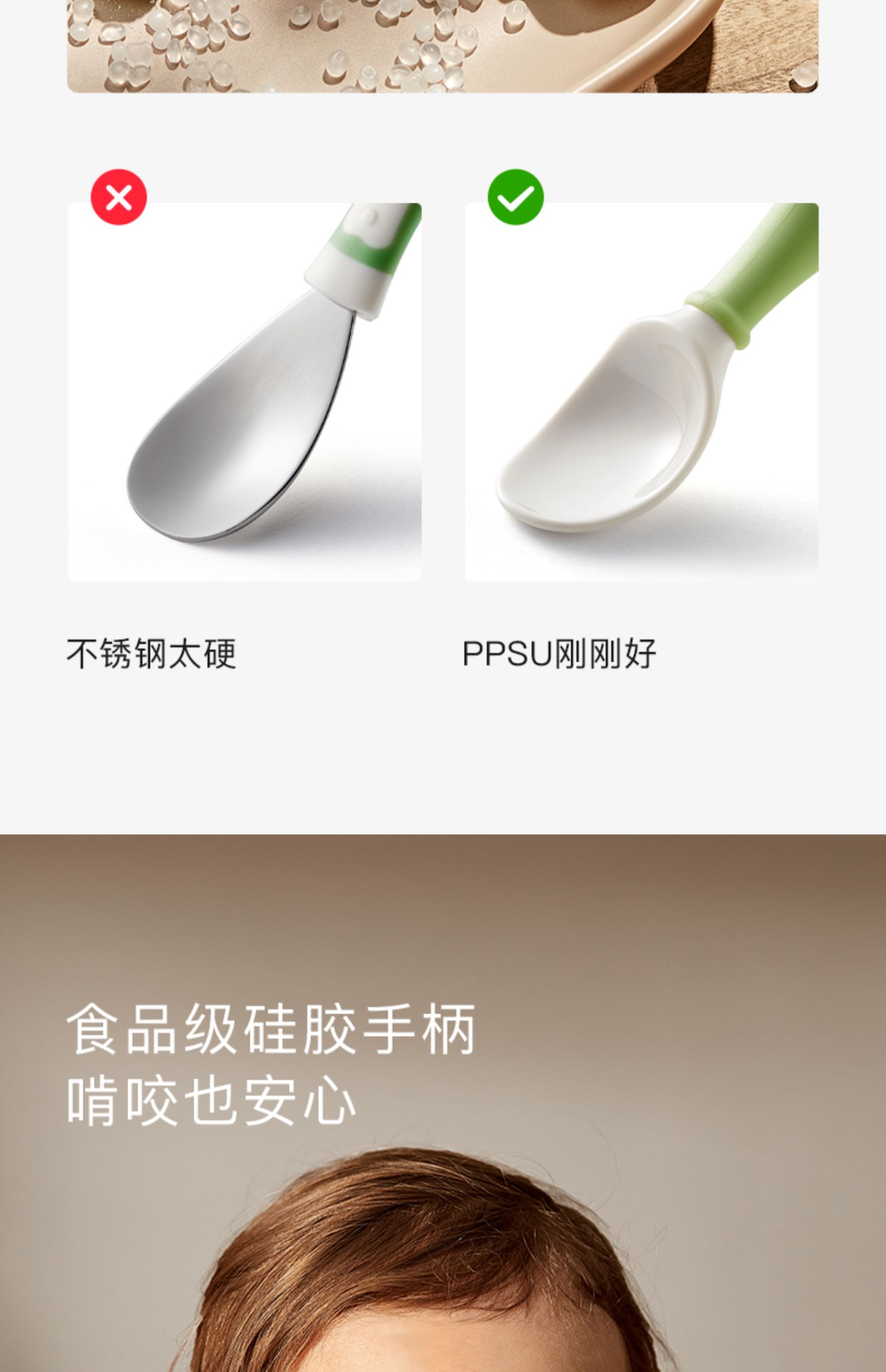 babycare宝宝勺子学吃训练婴儿短柄勺PPSU儿童餐具宝宝叉勺套装BBC-38714-38721