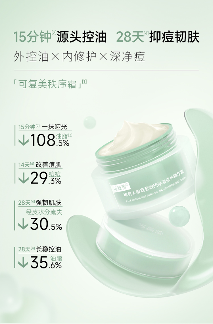 【可复美秩序霜】可复美稀有人参皂苷致研净澈修护精华霜 50g/瓶/盒