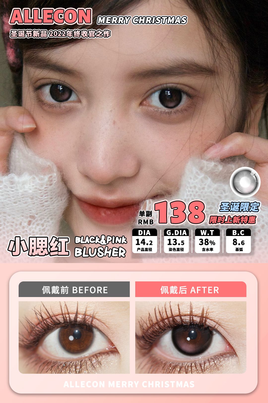 Allecon半年抛/Barie Cat日抛系列 小腮红美瞳直径14.2着色13.5韩产