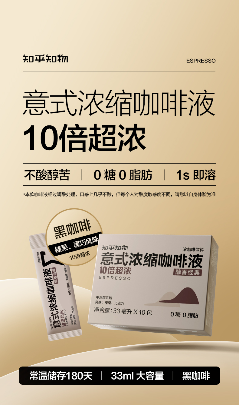 (GH)知乎知物 10倍超浓缩咖啡液 0糖0脂肪 冷热速 溶醇苦不酸