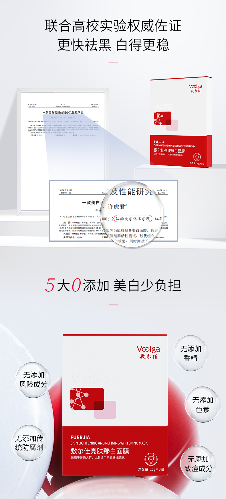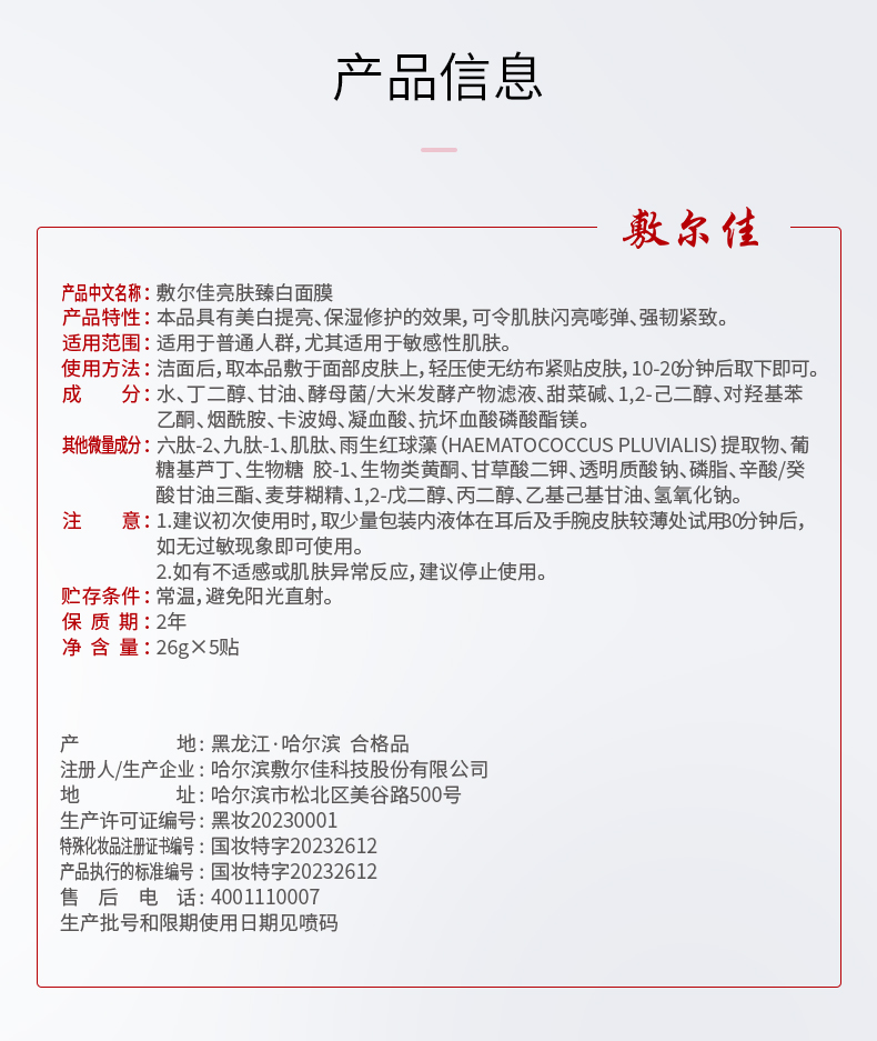 【限时拼团】敷尔佳亮肤臻白面膜5片/盒