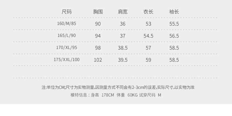 | 尺码: 85/160/M 90/165/L 95/170/XL 100/175/XXL | 面料: 其他 |