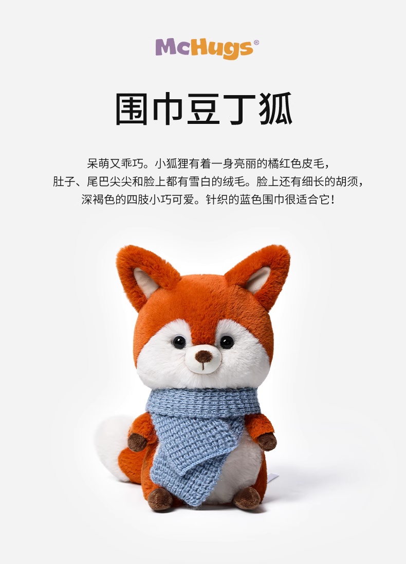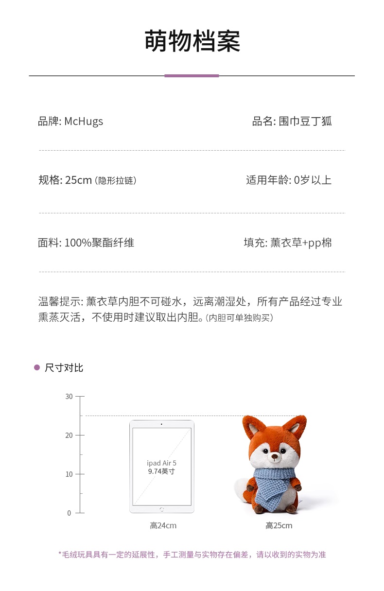 MCHugs 围巾豆丁狐 | 玩偶睡觉抱娃娃毛绒玩具 宝宝儿童安抚抱抱可爱动物玩偶(薰衣草香)