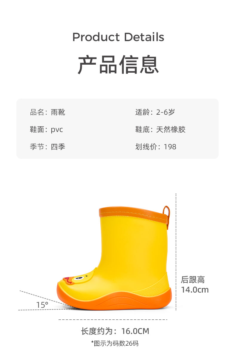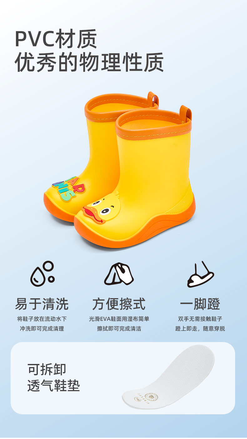泰兰尼斯儿童雨鞋四季新款男童雨鞋雨鞋女宝软底防滑雨鞋儿童鞋子 T10X5A7236