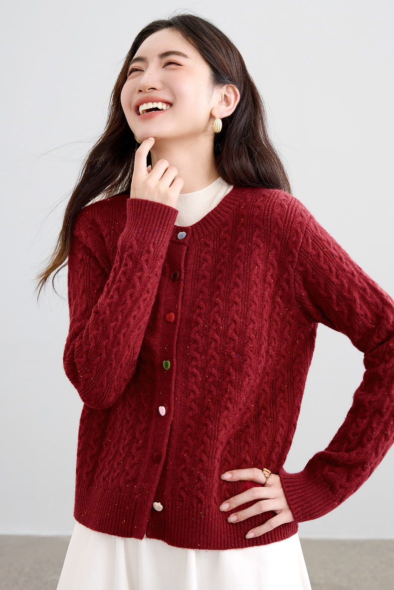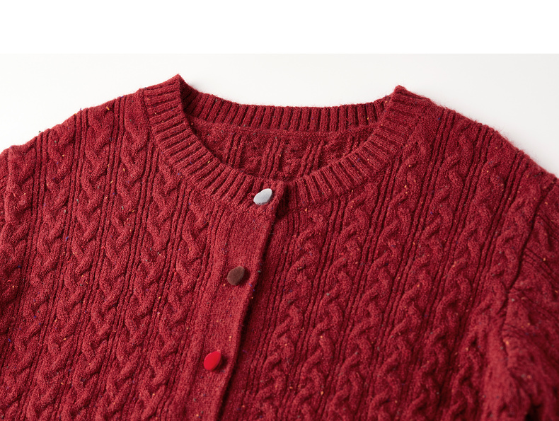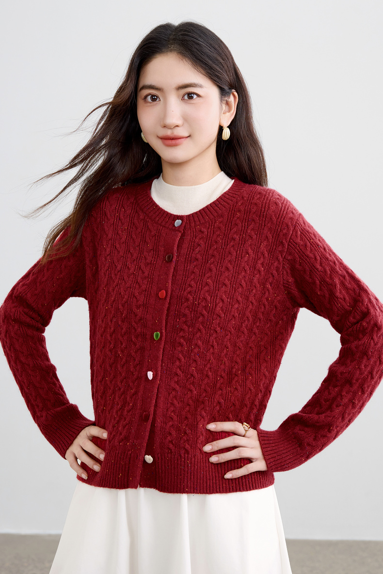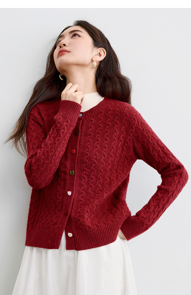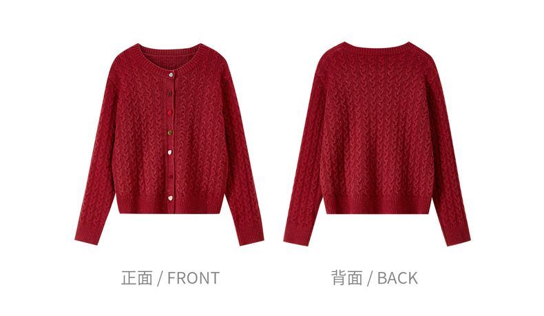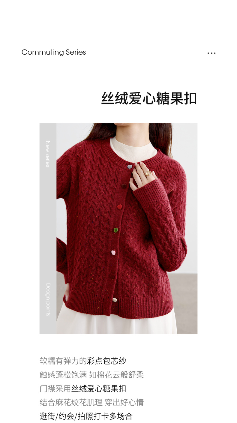 【内购】【丝绒爱心糖果扣】设计感圆领单排扣麻花绞花肌理弹力开衫毛衣-W53EB3564
