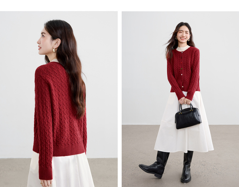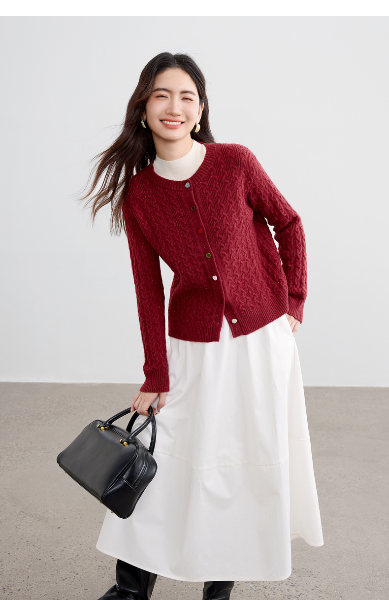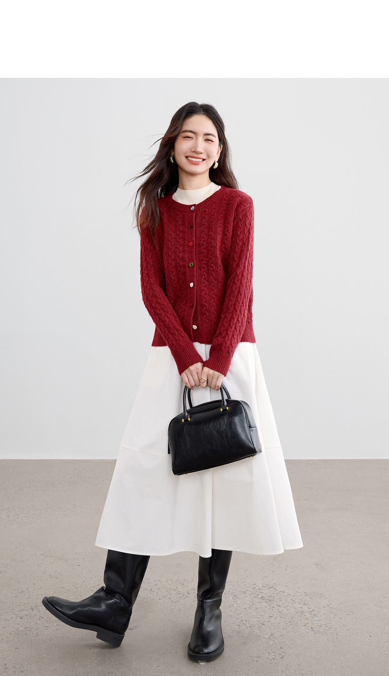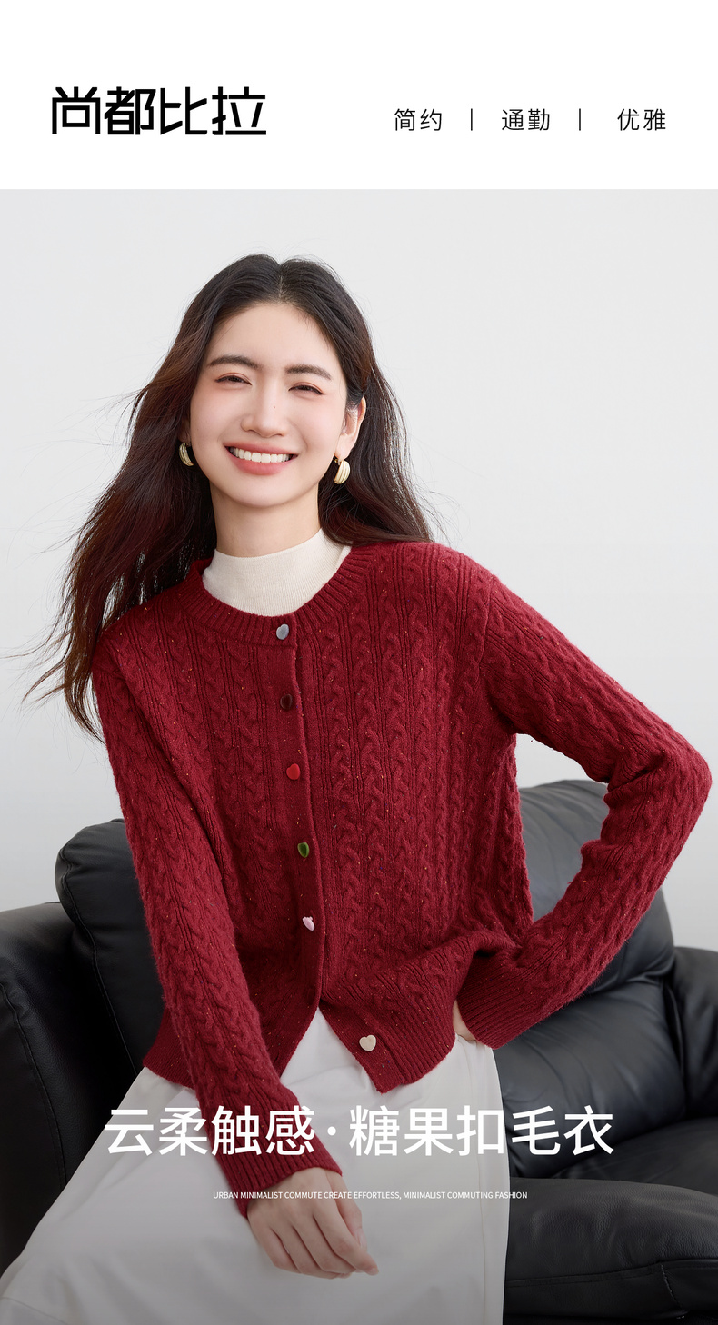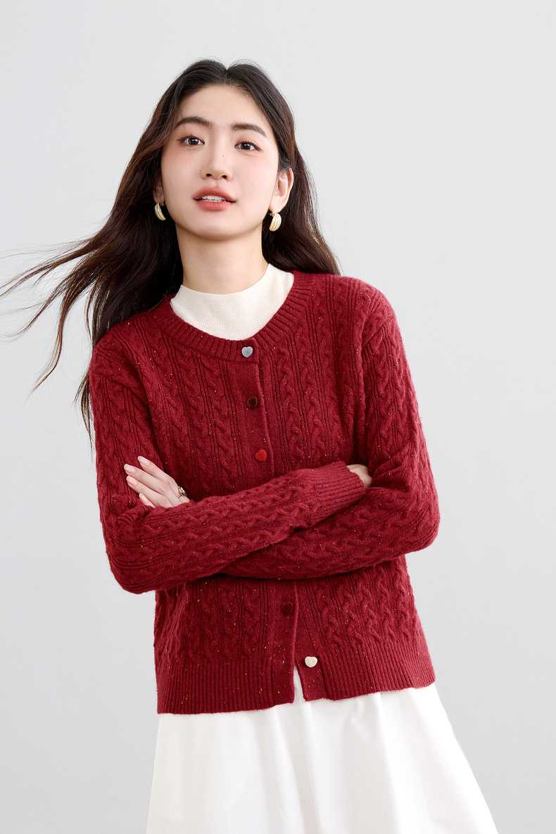 【内购】【丝绒爱心糖果扣】设计感圆领单排扣麻花绞花肌理弹力开衫毛衣-W53EB3564