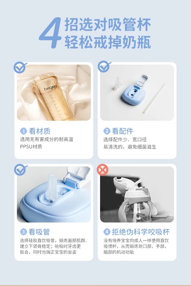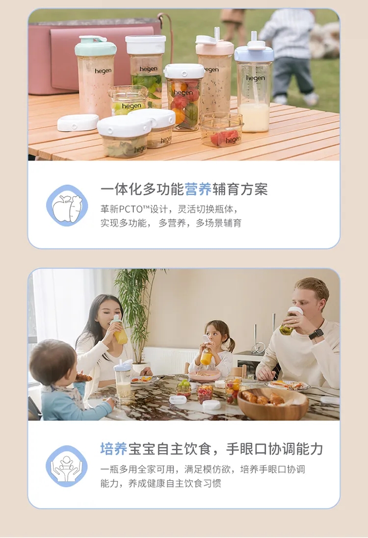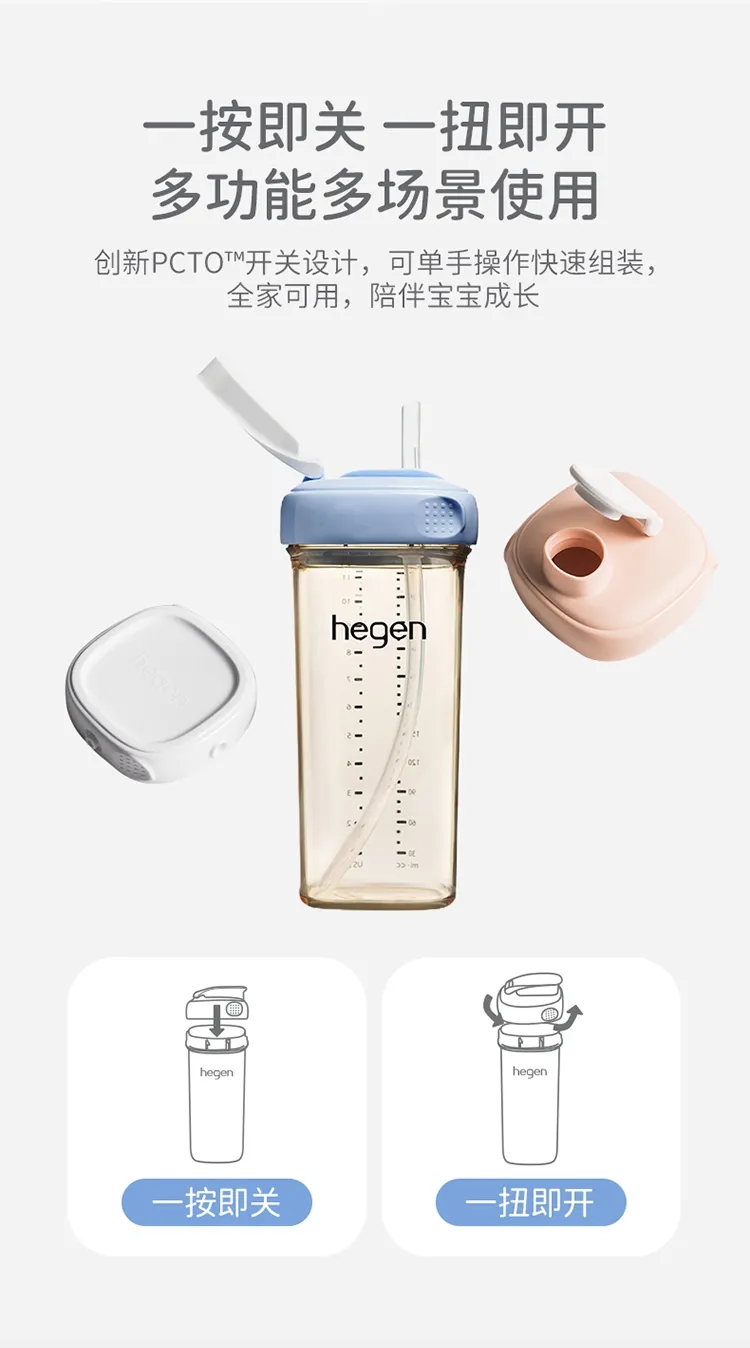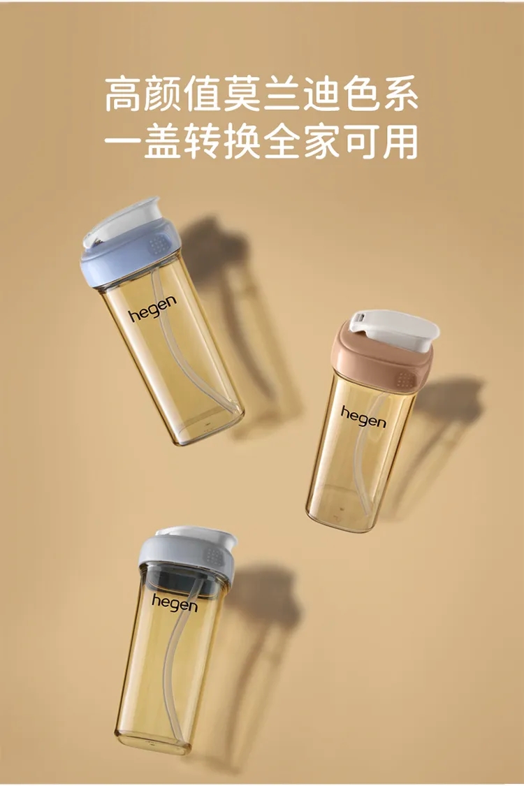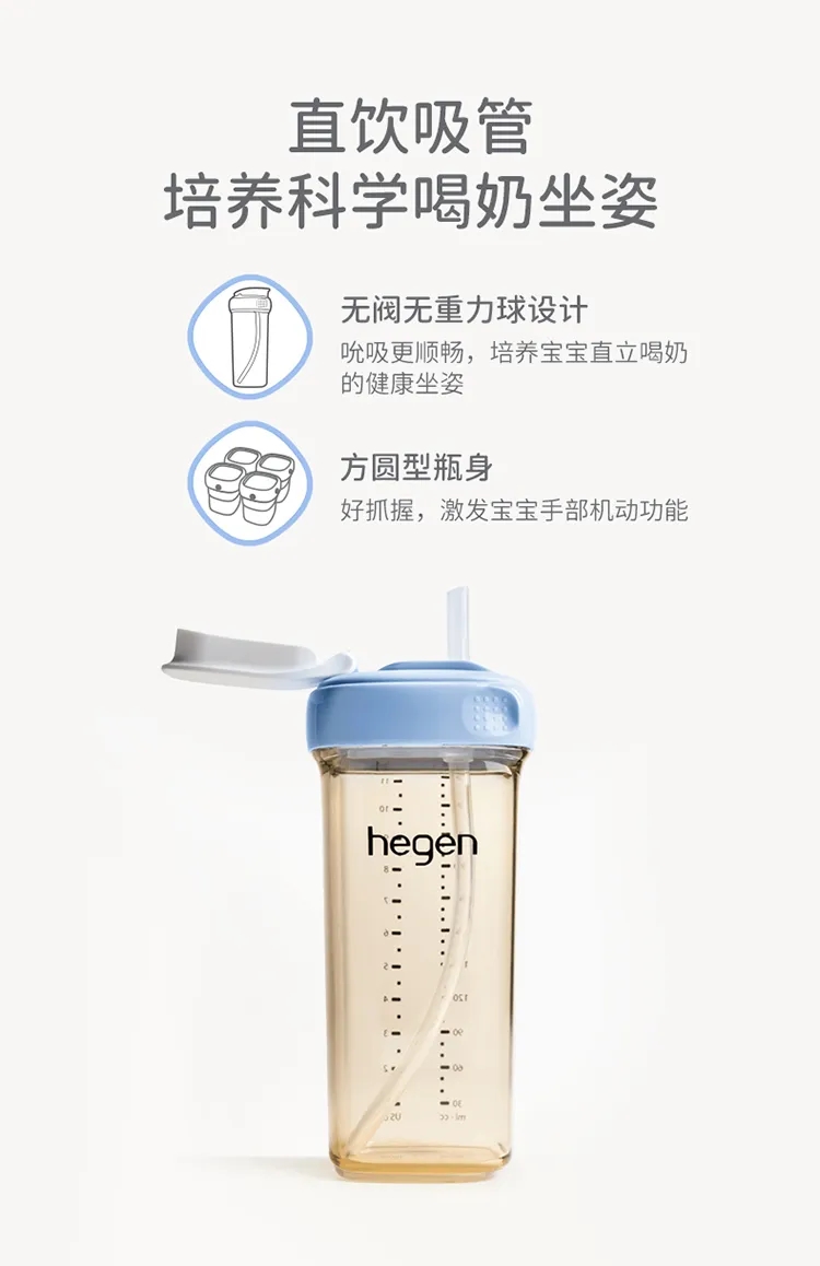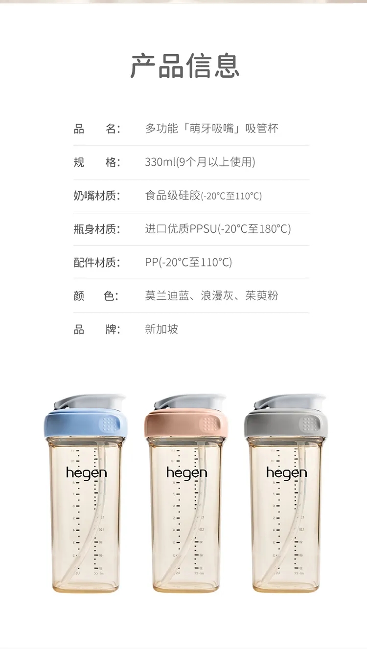 【上新新款浪漫紫色】hegen吸管杯儿童学饮杯婴儿9个月以上吸管杯儿童宝宝多功能水杯