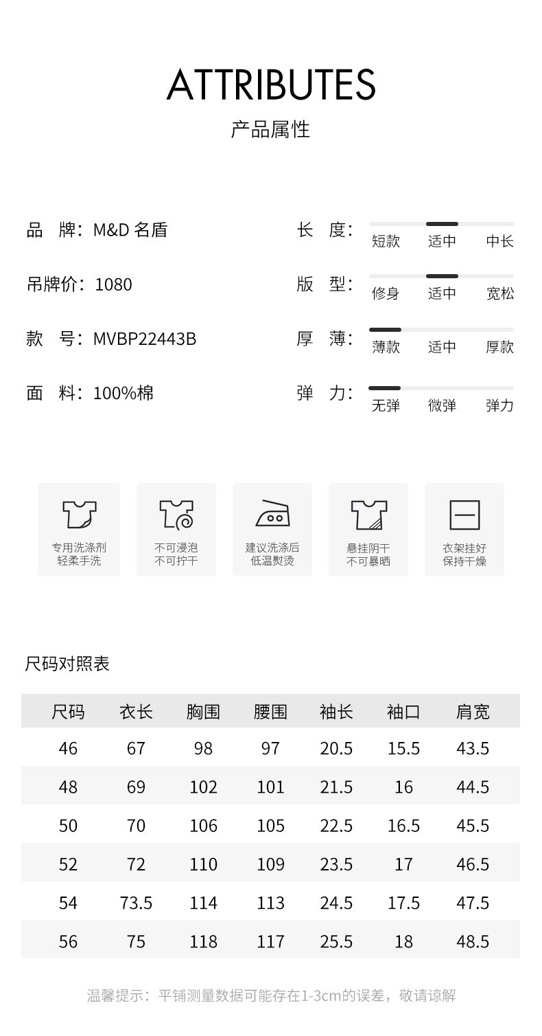 | 男装品牌: M&D/名盾 | 袖型: 常规 |