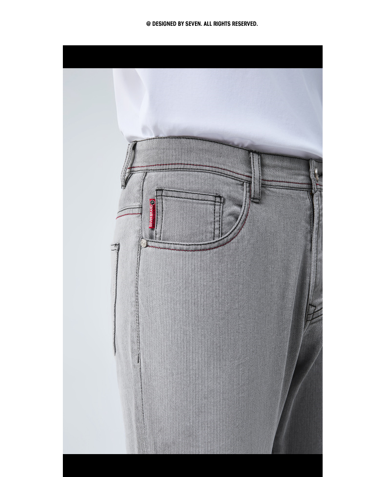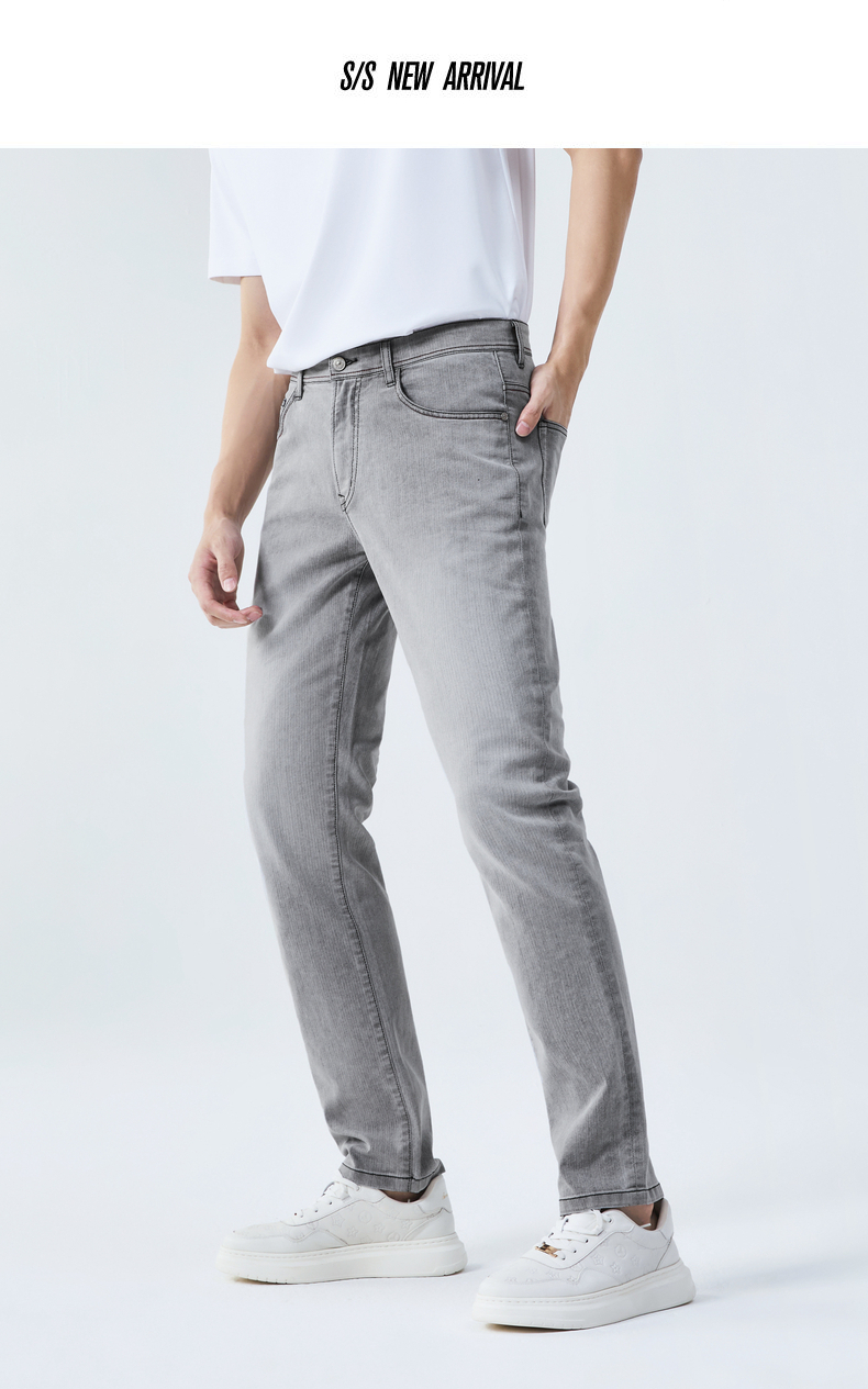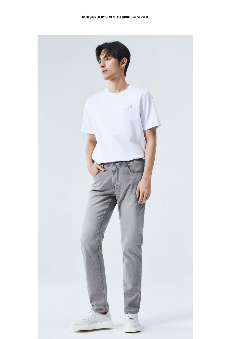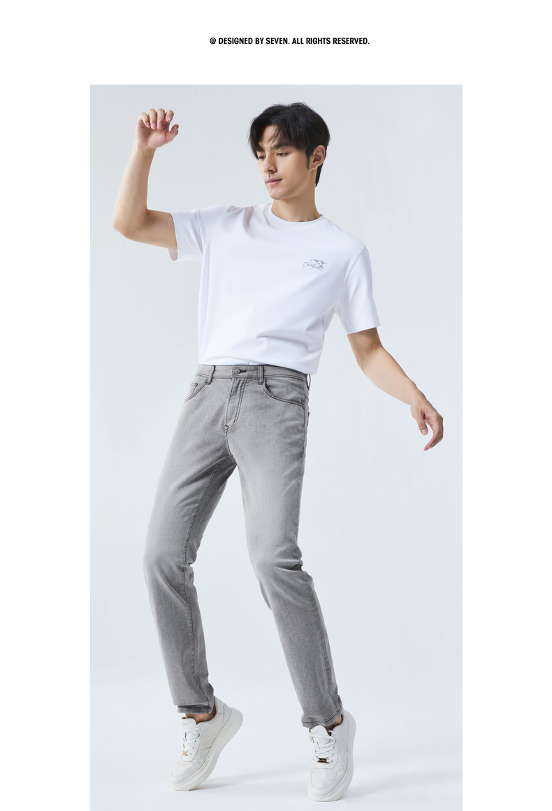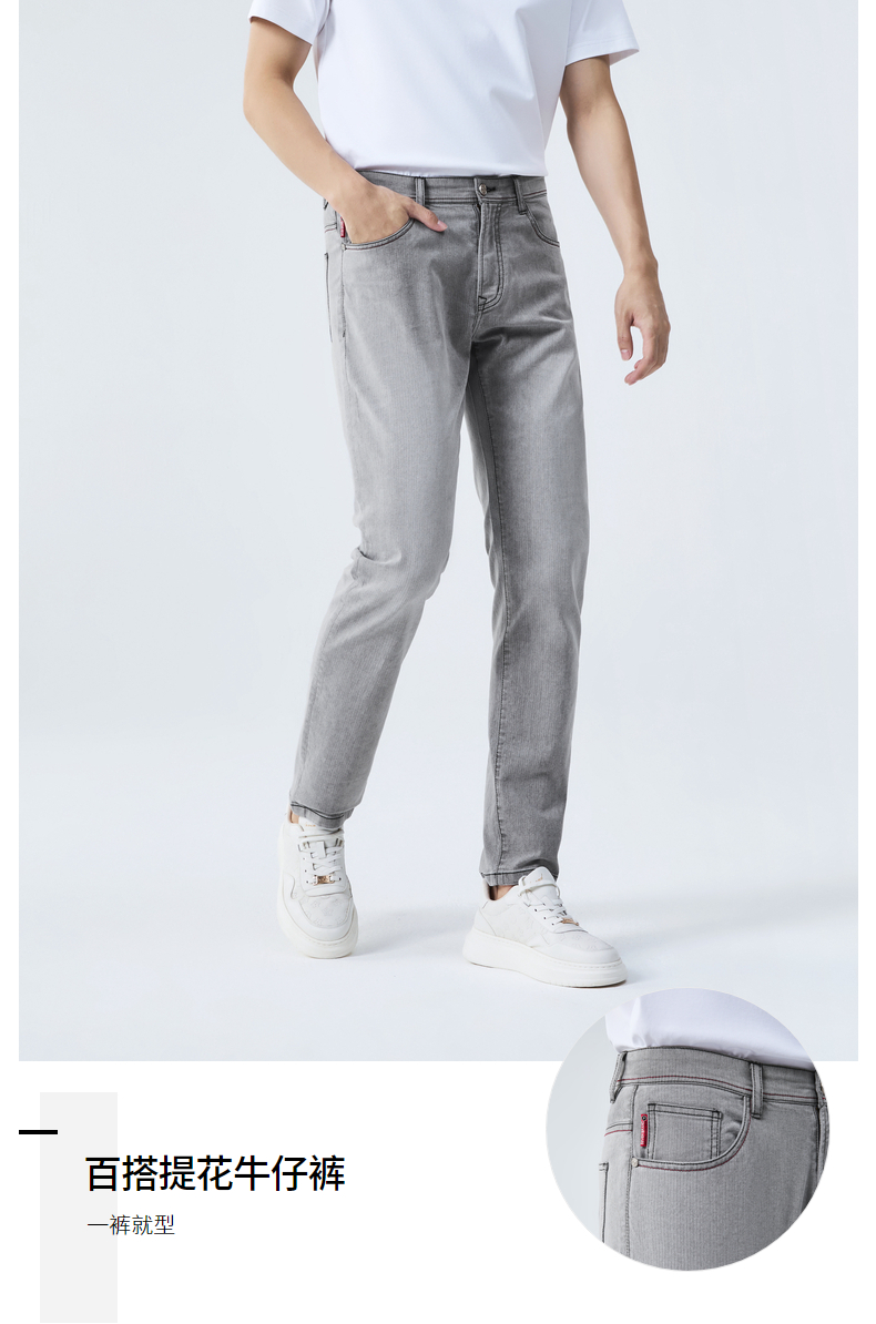 【提花牛仔】柒牌水洗牛仔裤男士春季新款人字纹休闲百搭直筒长裤128H70840