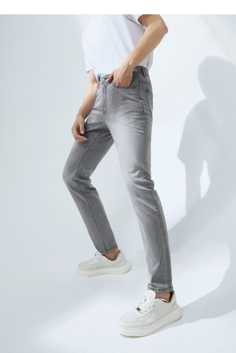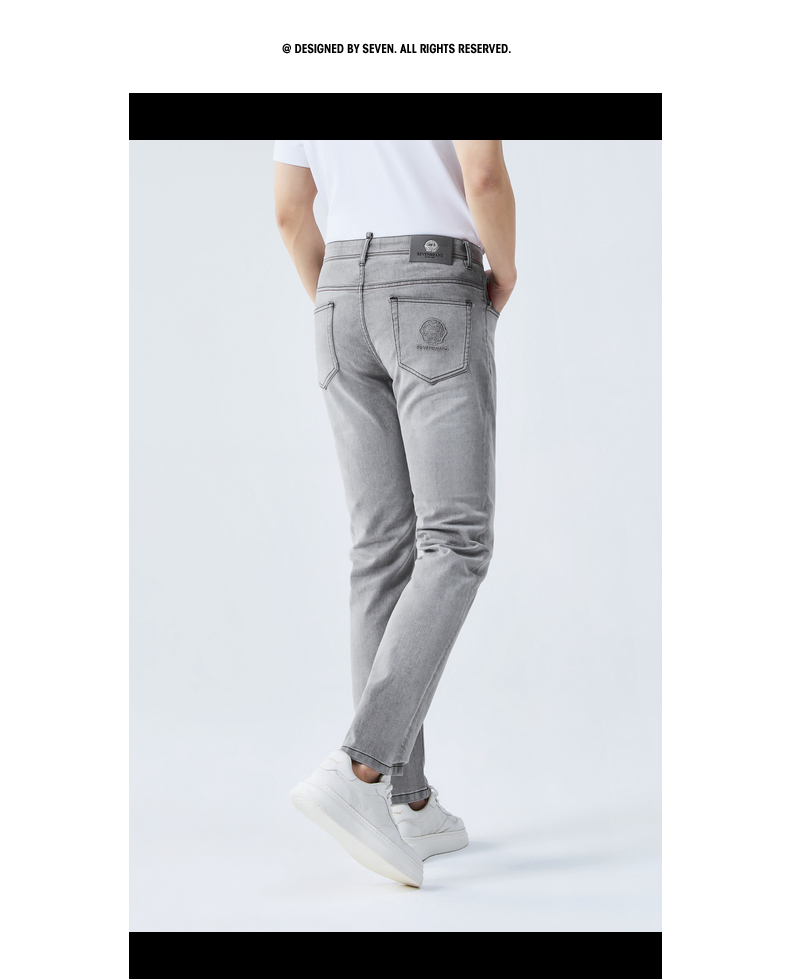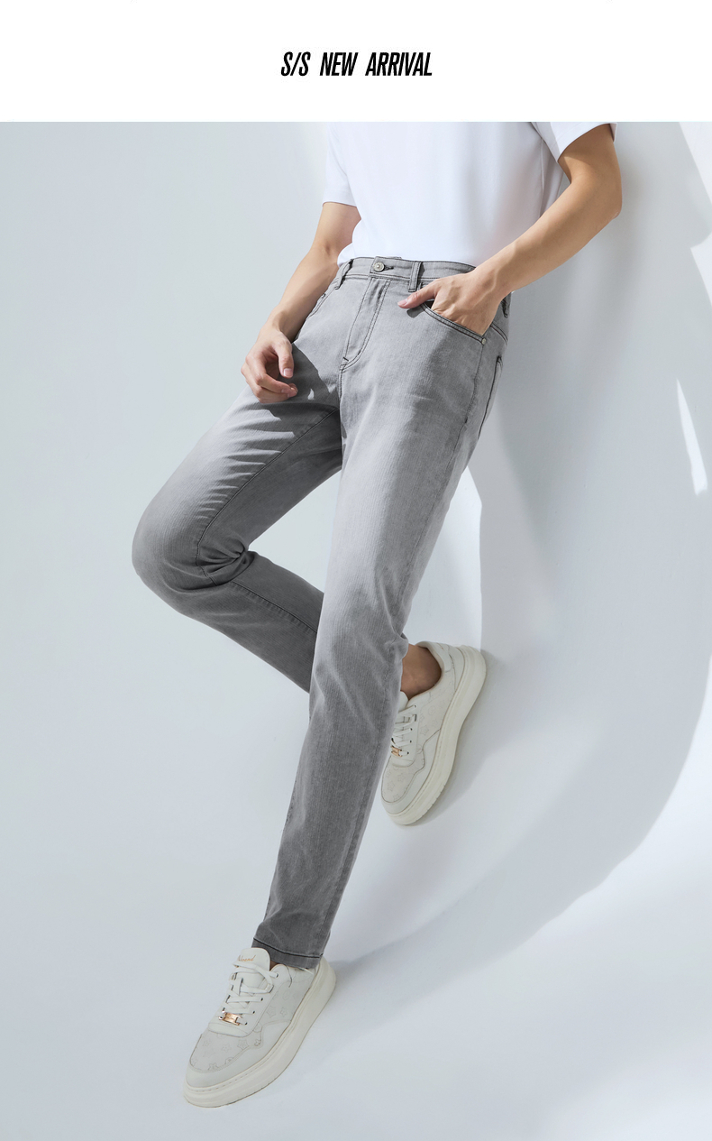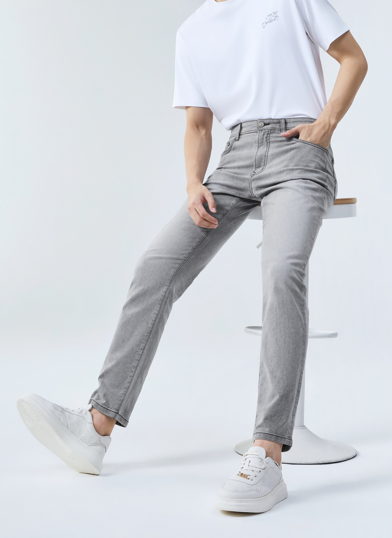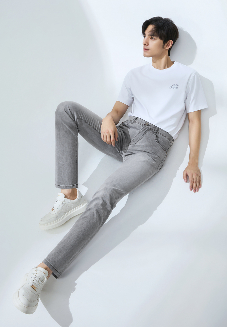 【提花牛仔】柒牌水洗牛仔裤男士春季新款人字纹休闲百搭直筒长裤128H70840