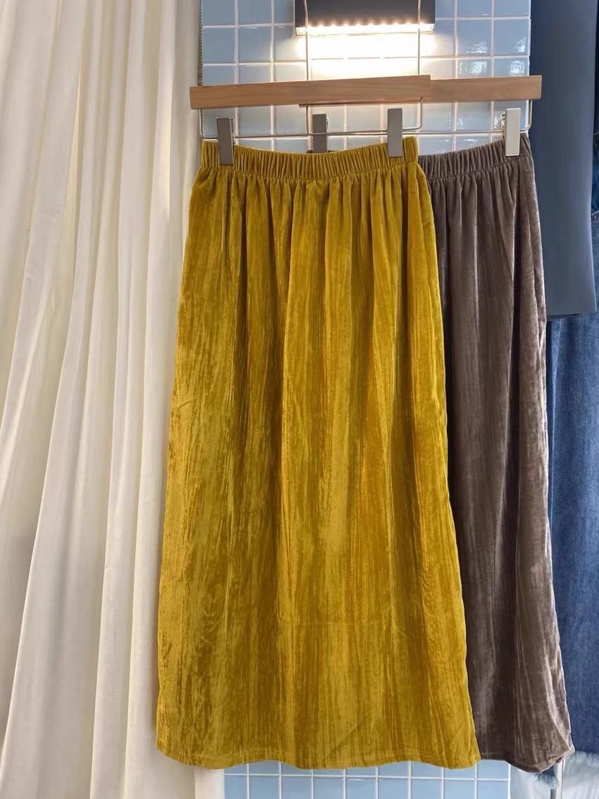 基础款丨肌理丝绒 半身裙 垂感高腰 后开衩