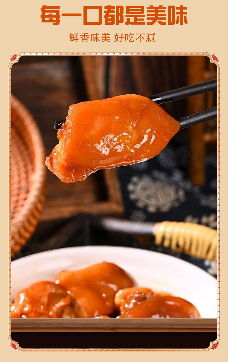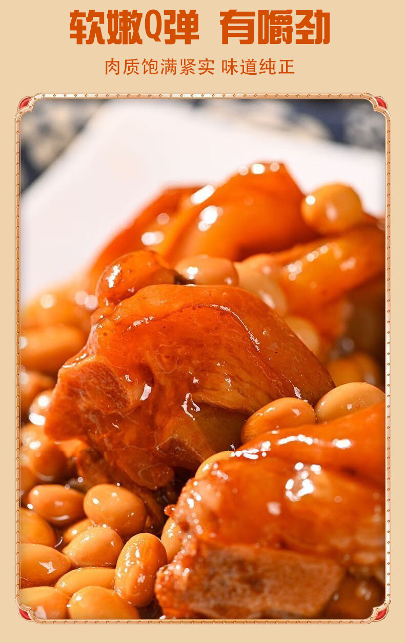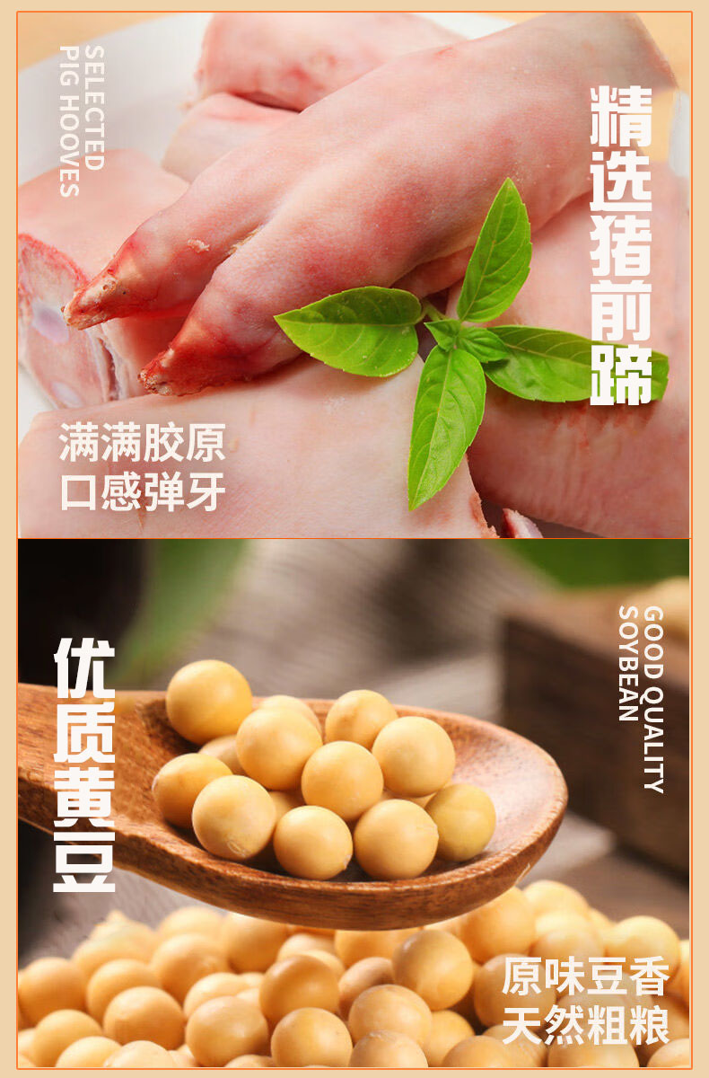 D黄豆焖蹄花,5袋组合,精选新鲜猪脚+优质黄豆,传统工艺,匠心卤制,选材用料考究不将就,肉质饱满紧实,Q弹,营养丰富,口口入味,鲜香四溢,好吃不油腻D