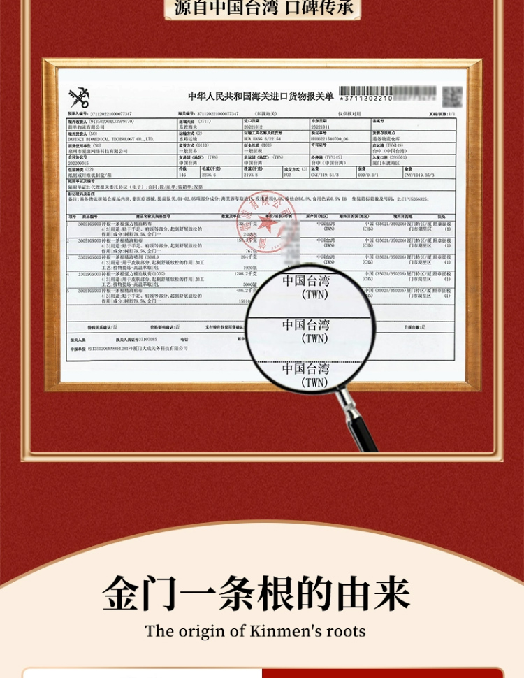 一条根在台湾当地名气很大,几乎家家必备!从前,每一位来台湾省旅游的亲戚都会被要求:”多带几盒一条根呀“这可是台湾的镇山之宝?? 旅客去台湾不买吃的,不买金银首饰~也得扫上几盒【一条根】送亲朋好友,自留备用!!因其效果显著,方能掀起这股扫货“浪潮,还因此上过央视新闻呢!