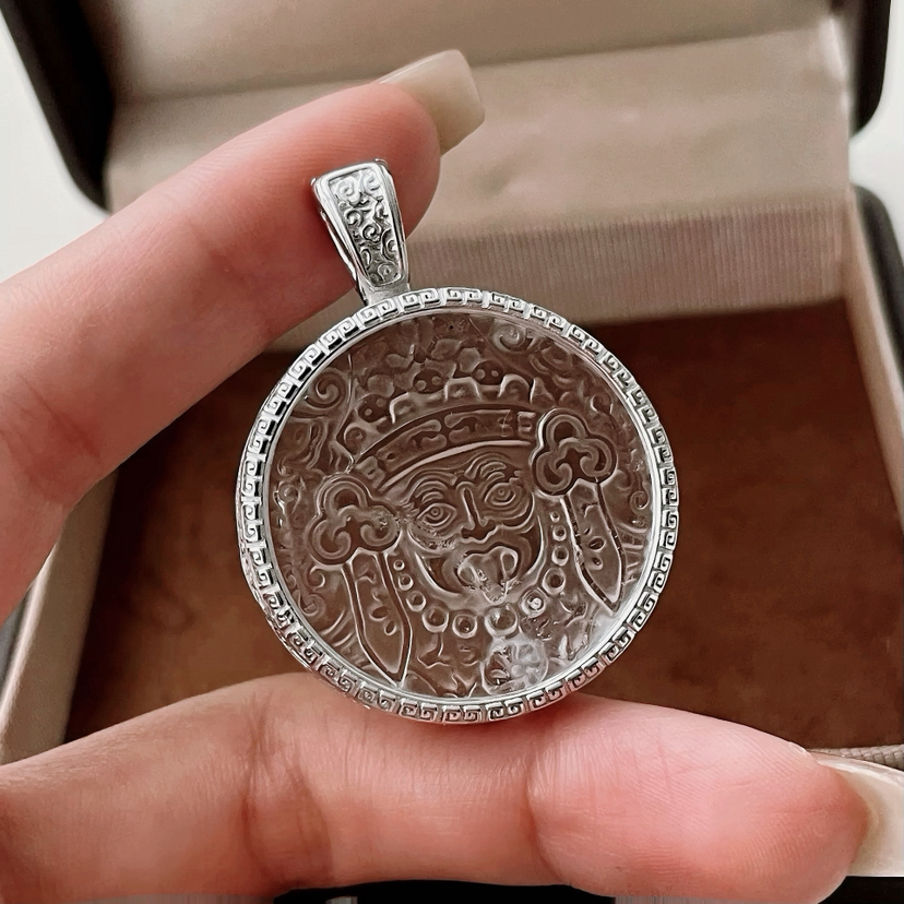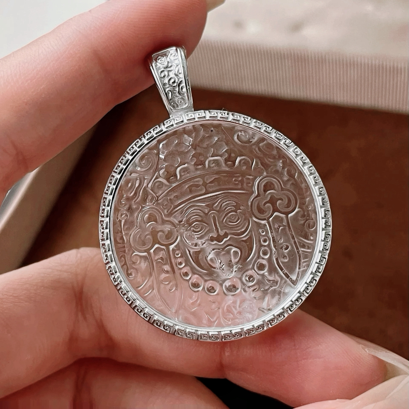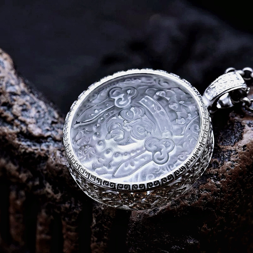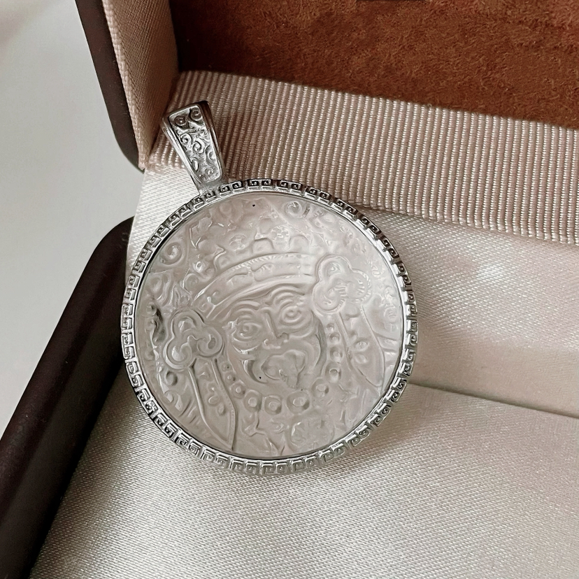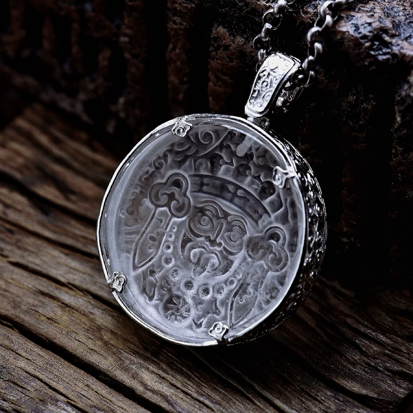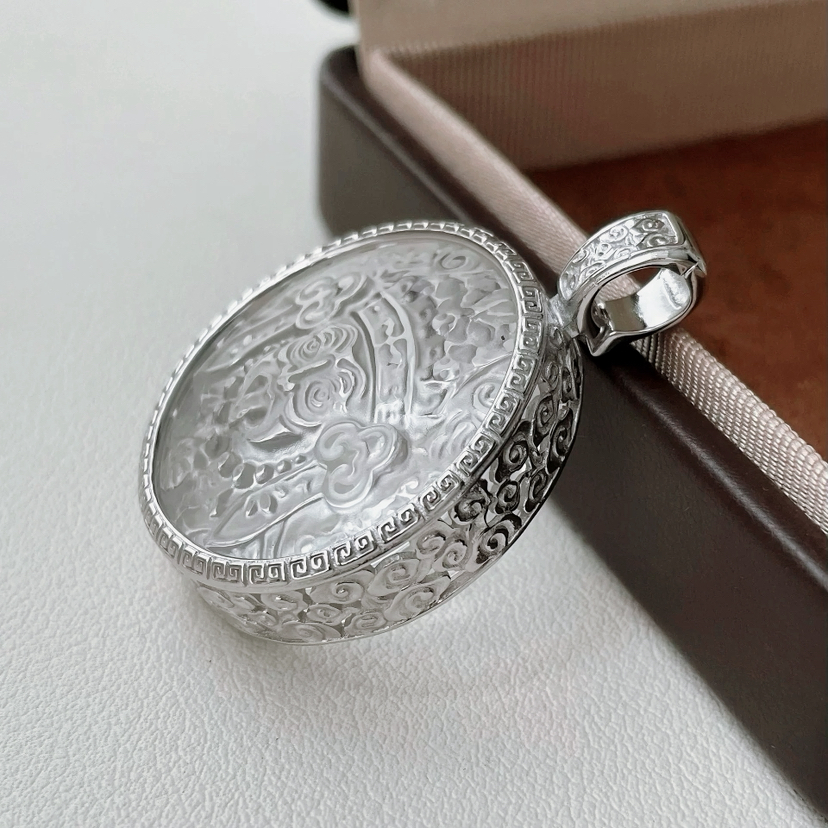 s925纯银白水晶扎基拉姆吊坠男女新款复古高级感挂坠精致扎基拉姆项链直径3cm